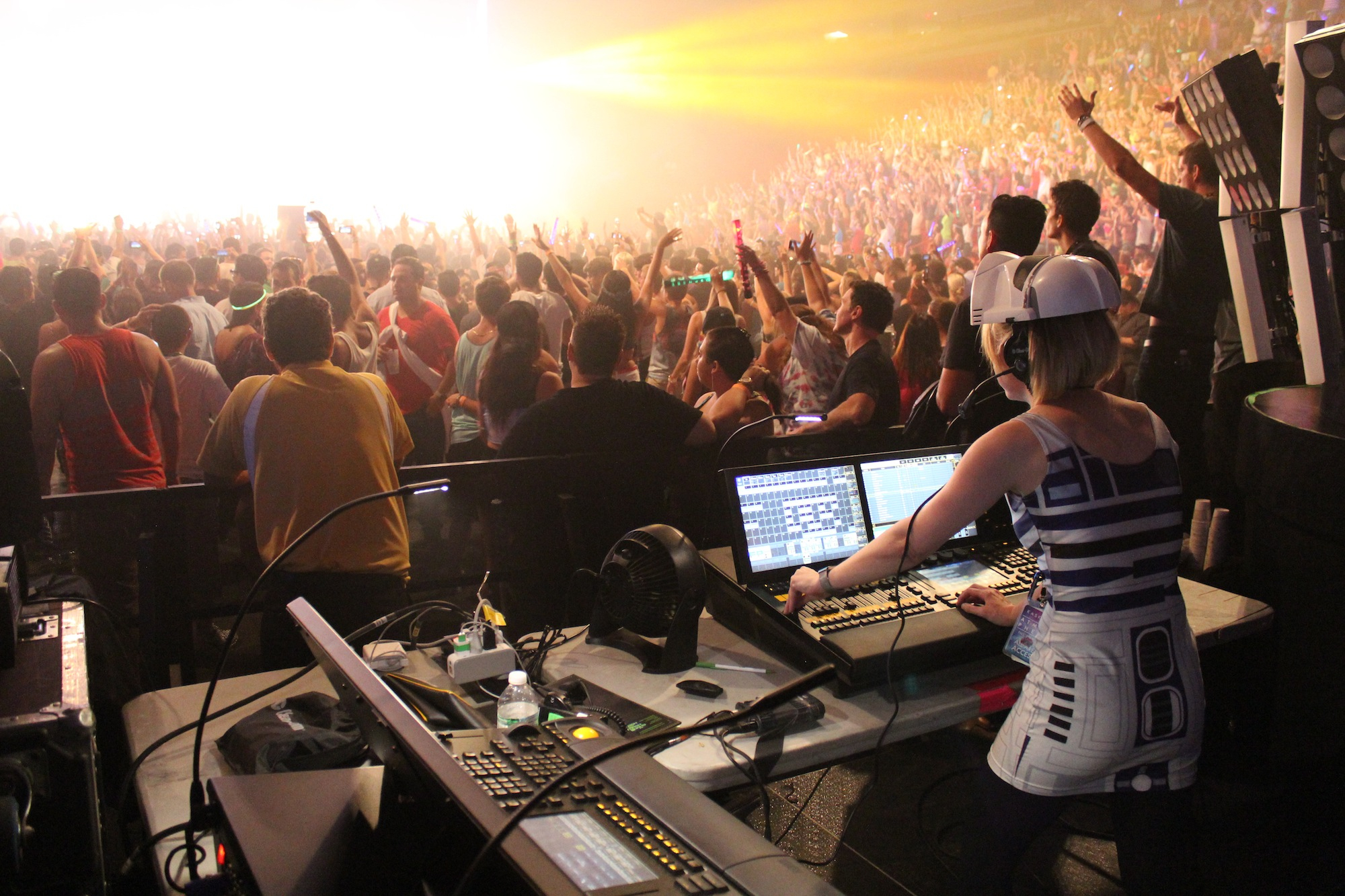 Cat is seen below here rocking not only the amazing Cat West Star Wars dress, but moments before rocking the Nexus 4X4‘s you see in the photos (and a ton of Geyser RGBs you don’t see)! Cat West, we here at the Chauvet Professional Blog salute you!