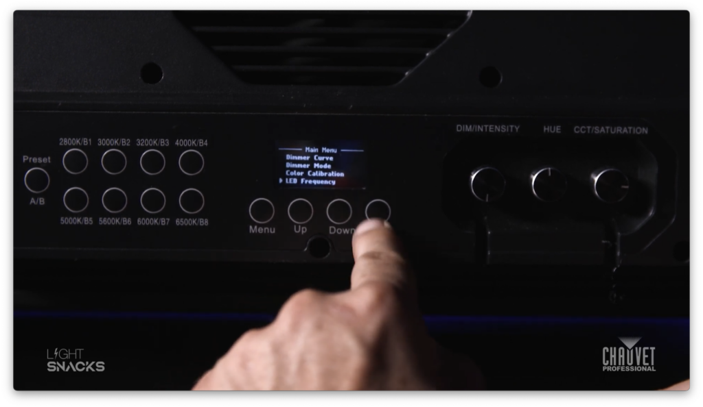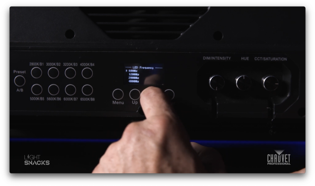CHAUVET Professional fixture menus include the option to specify the frequency that LED currents switch on and off.
