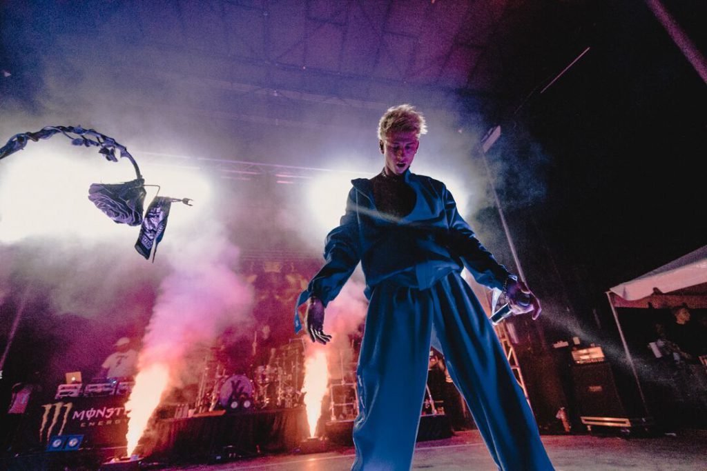 “I’ve worked with Machine Gun Kelly for some time, so you get a sense of rhythm. I’ll trigger certain effects and he is really great at playing into those moments. For instance, we typically have some blow-thru ego risers along the downstage and I’ll place vertical foggers underneath these structures, then trigger the foggers right at the end of the intro track. When this happens Machine Gun Kelly just stands right over it and throws his arms out with his back to the crowd; creates a great look every time.
