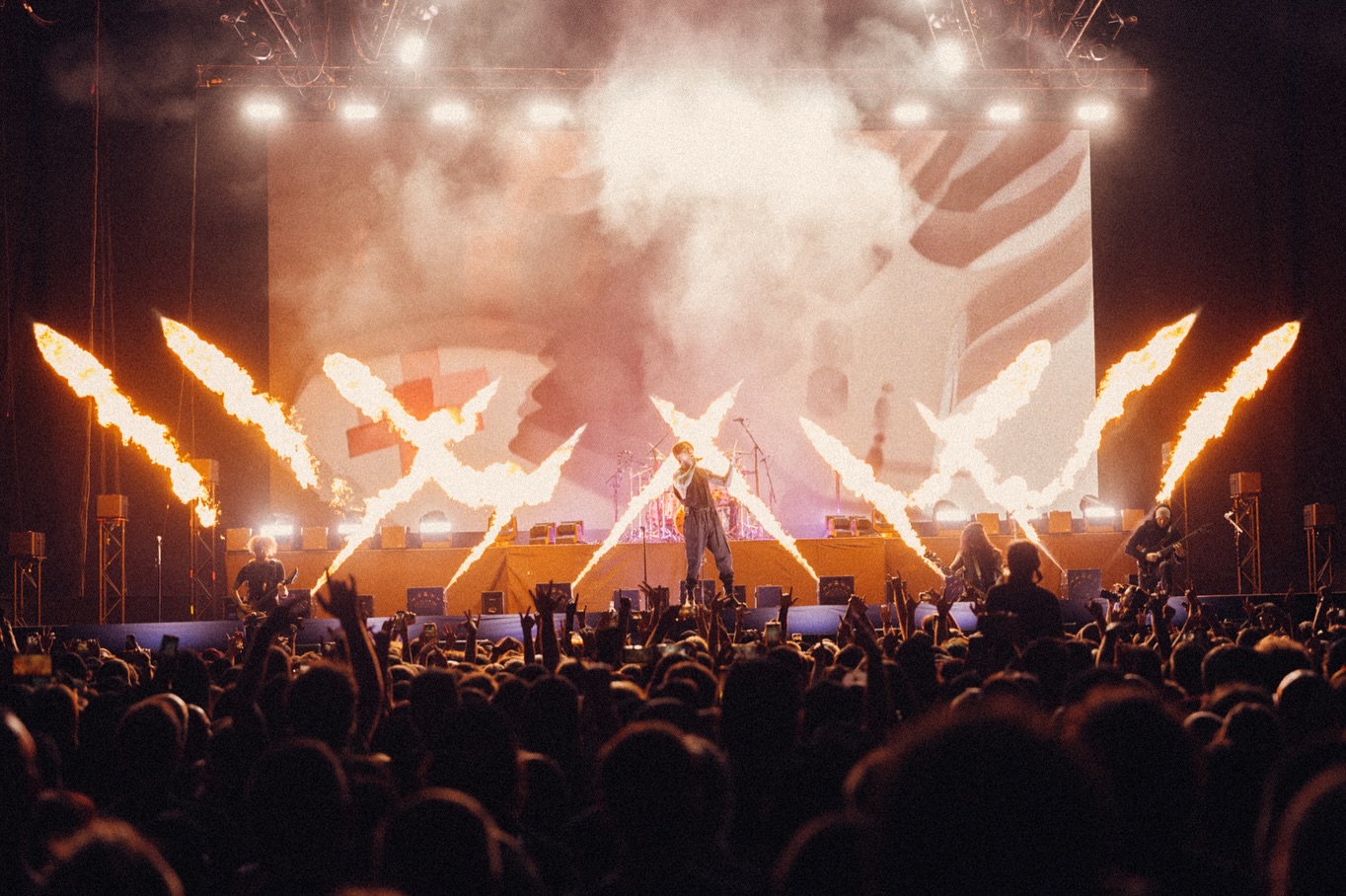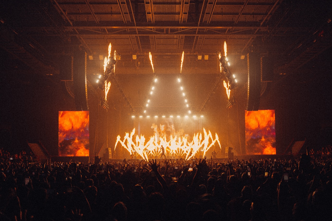 Mungal, the band’s Creative Director and Designer, turned the show’s generously proportioned rig into a giant canvas of bright light and flames. “We had fixtures spanning from the deck floor to 46-feet high,” he said. “We had them above the IMAG screen as well as throughout the stage.
