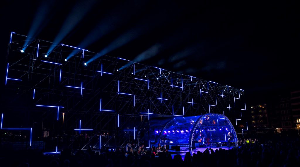 Never Fear Shadows’ design concept for the festival was centered around a 60m x 20m translucent stage structure built exclusively from the ÉPIX Strip IP fixtures. The structure provided sizzling visual support for the music of K3, Niels Destadsbader, Gers Pardoel and other stars. At the same time, it also left clear sight lines to the festival’s beautiful scenic backdrop for the live audience and TV viewers. This was particularly important for TV viewers during sweeping panoramic shots of the festival.