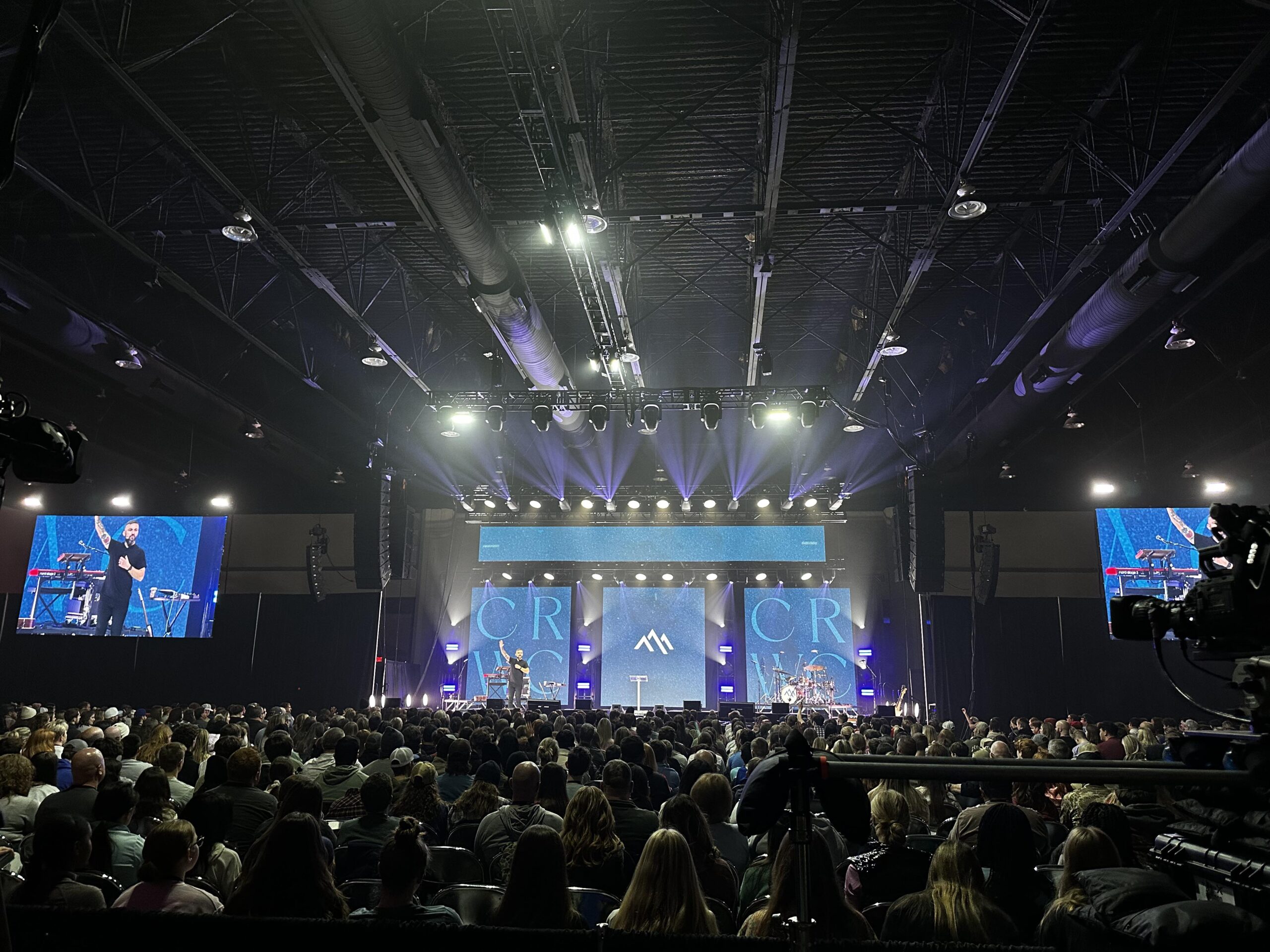 “The convention center venue had no house lights, so I had the Color STRIKE Ms fill in and play this role,” said Dingman. “During worship, I used them as house wash with colors and effects. Then, for the preaching and talking moments, I created a really nice and even house light with their center tubes.”