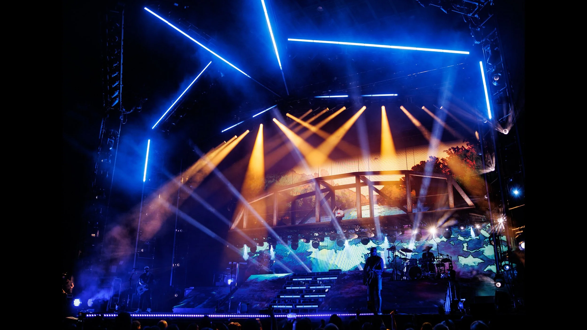 “We built out a touring package that year and brought on Alex Parayelous as the band’s touring LD. Bonus was that Alex was a video expert. He spent two weeks at my home studio with me building out a touring server system on a budget, and we built a pretty good system of pulling stock content, compositing it, and programming the server like a lighting fixture so that for both the timecoded songs, as well as the punted songs from their 250+ song catalog, had video and IMAG effects to match. Since then, I’m so grateful to have had the band’s trust and we have created some really beautiful shows together.”