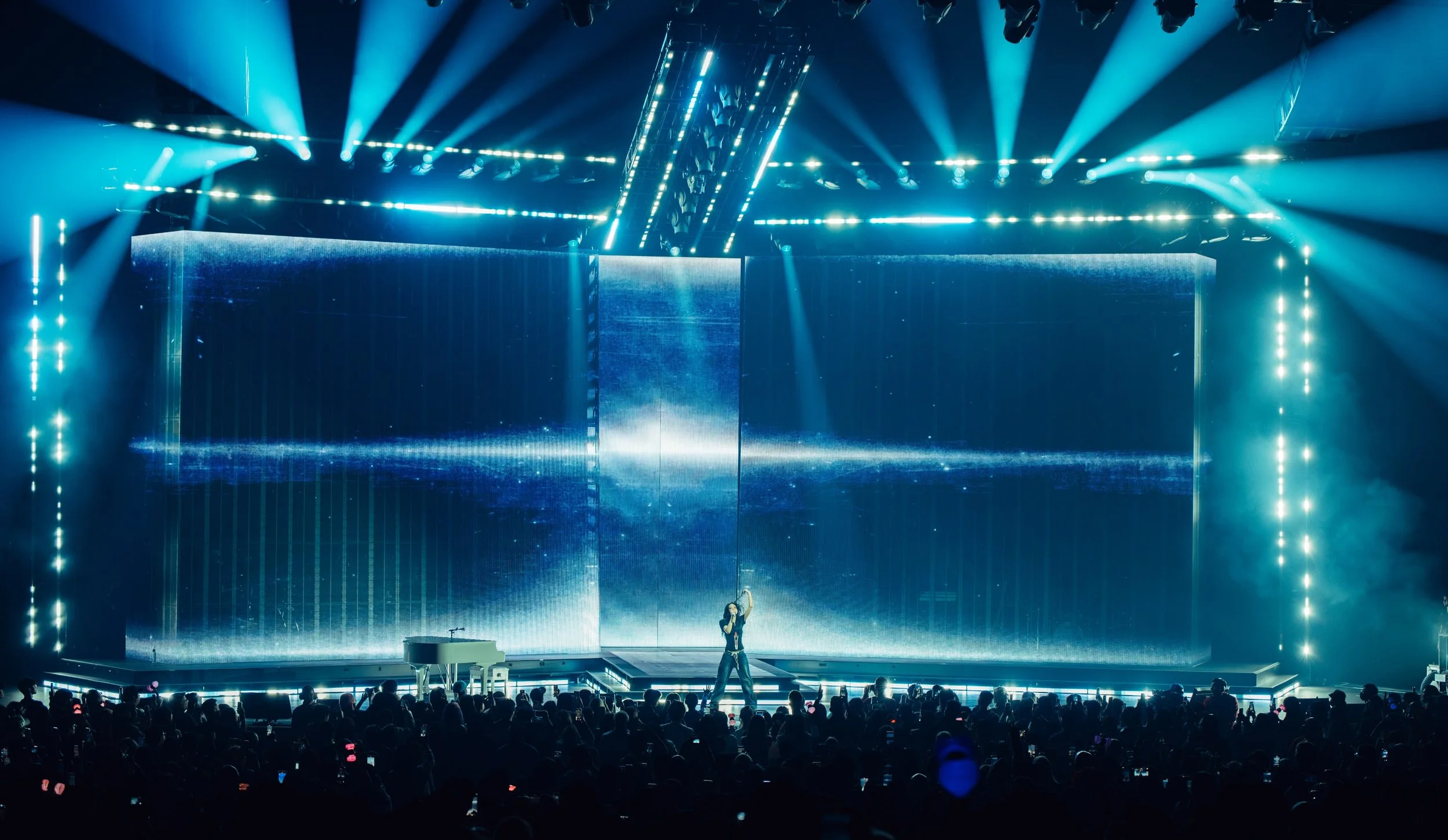 “Those video walls with the returns, let us go between traditional upstage wall content looks and looks utilizing the returns, giving us a rich 3D effect. It really felt like they were not just upstage walls, but monolithic 3D objects.