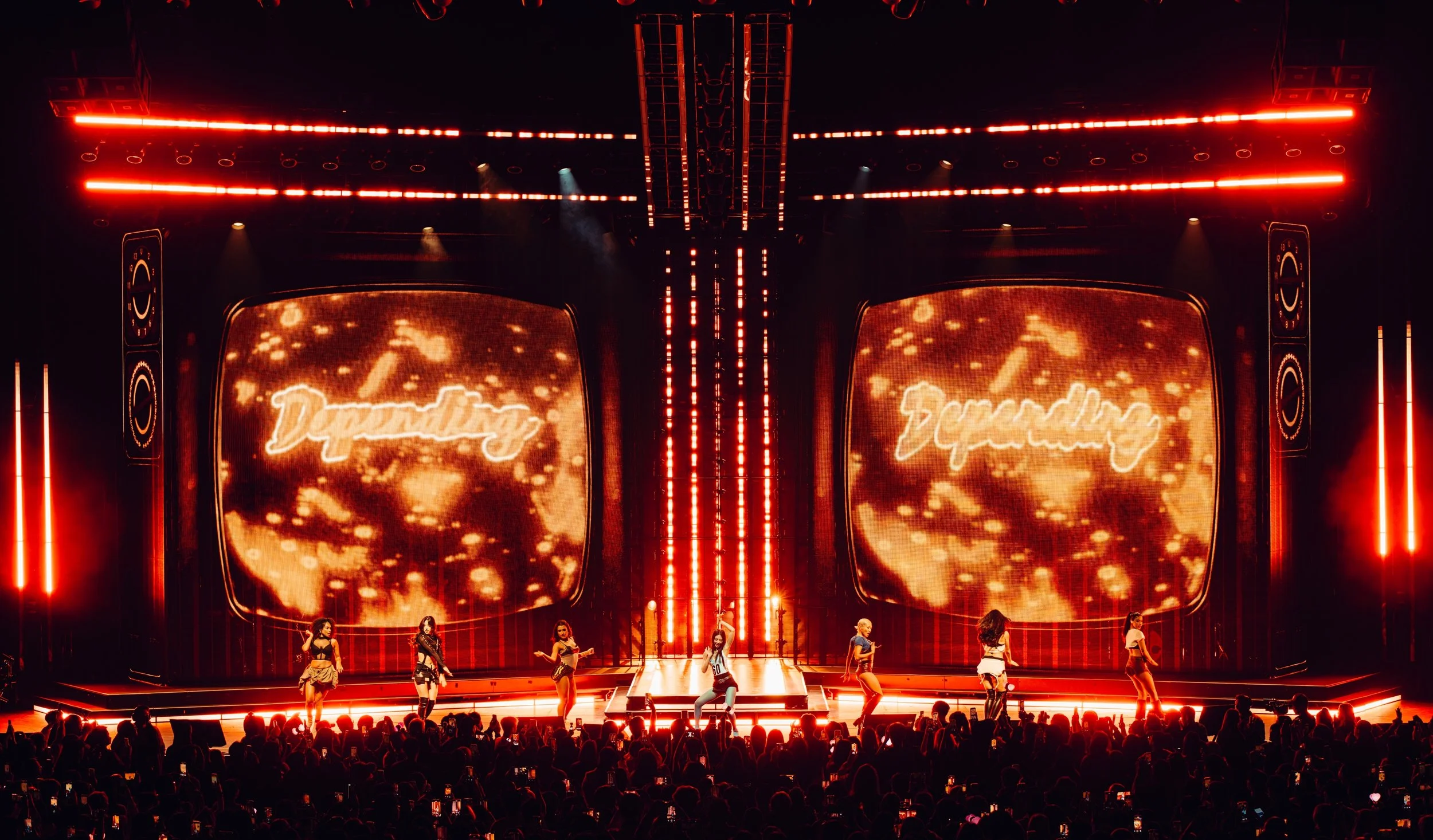 In your work for Jennie’s “The Ruby Experience” world tour, you kept lighting fixtures off the stage, preferring to rely on a giant video wall as well as top and side light that was very far from the center of the stage. Can you tell us a bit about why you went with this open-look?