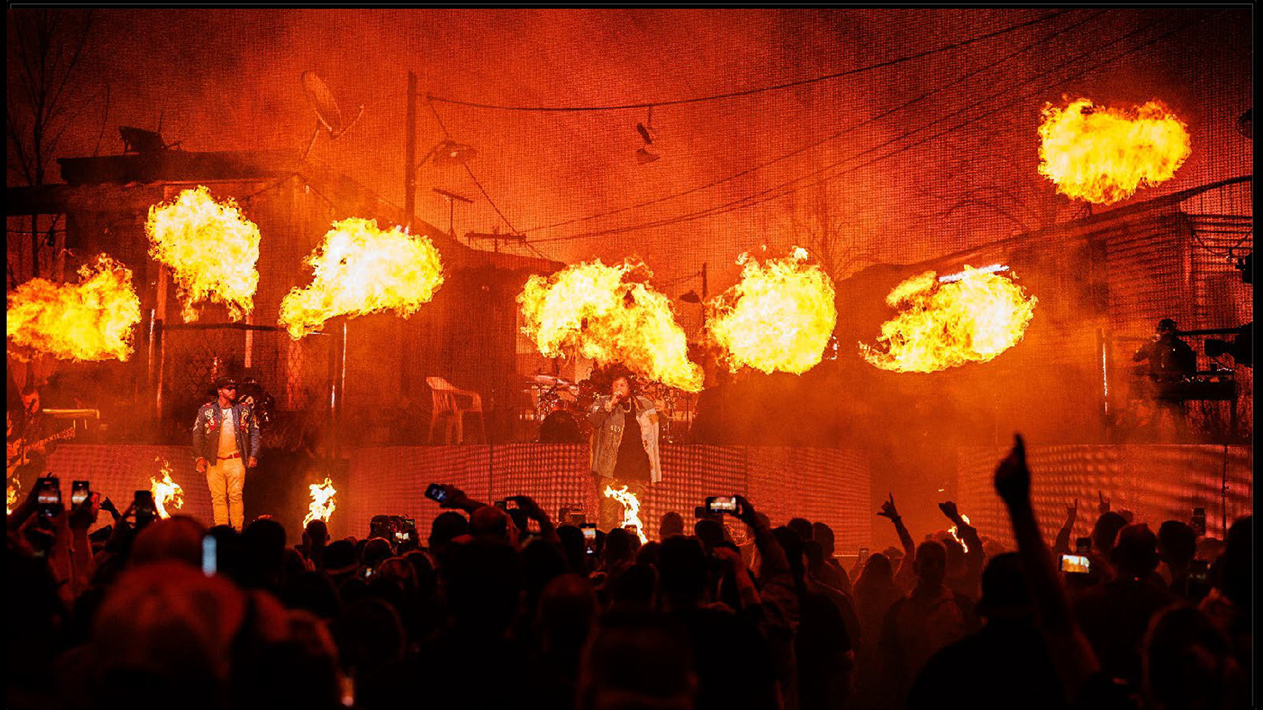 “Jelly’s show at Bridgestone was sort of his big coming out as an arena artist – at the same time it was his big homecoming to Nashville – A victory lap. His manager specifically put in the hero wall and brought in the fantastic team at Luz Studio to create these environmental scenes for the hero wall upstage, taking us from a rundown trailer park, to dive bars, to the glitzy neon signs of Broadway in Nashville, to a burned down church, telling Jelly’s story – From redemption to fame to his philanthropy.