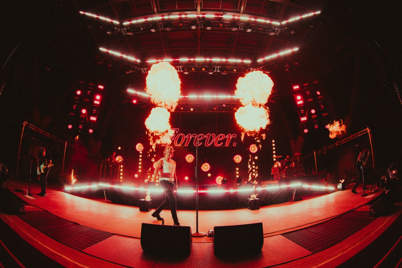 Borealis is scaling the show to adjust to the three venues’ different stage sizes and configurations. Regardless of the venue, though, the show follows the same trajectory, one intended to take audiences on a visual journey that reflects the different musical paths explored by All Time Low throughout their career.