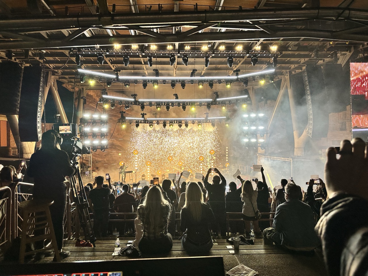 “The general idea behind this specific show’s production revolves around spanning ATL’s 20-year career to date,” said Mathews. “The show evolves throughout the set. This starts with a somewhat striped-back first act. Then, in later acts, new production elements are revealed via automation, such as bringing in the illuminated ‘Forever’ sign and moving elements close to the stage to impart the feeling of a small, intimate club. Later on, the rig is expanded to feel like a major festival and, at points, has big asymmetrical looks. All of the automation gear and programming is provided by Tim Kruse with Entertainment Rigging Services out of Texas. We used a handful of tungsten and retro-feeling fixtures in the show to try and evoke a classic feeling. As the show evolves, we bring modern elements like the linear fixtures with strobe tubes, neon scenic, and new elements at other significant points in the show.”