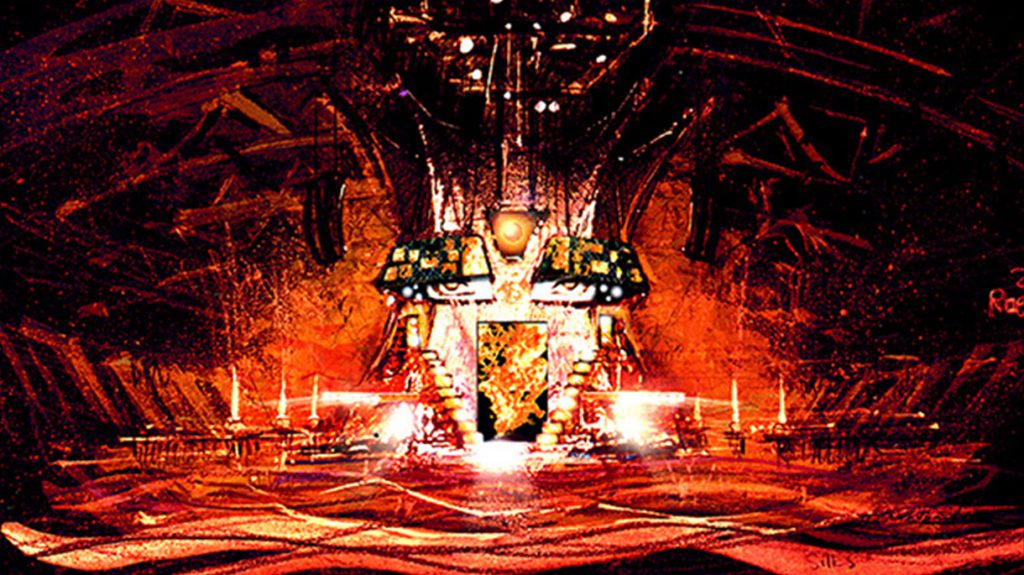 “The opportunity fell into my lap on this one. In the beginning of a show design process I’m always asked to provide concept sketches, and I try to sketch in the lighting and FX vibe to sell the overall scenic look. A good friend of mine, Roy Bennet, always said you can’t have light without darkness, and I always say you can’t have scenery without light. I love sketching heroic feeling into my scenes with light and fire. I love lifting up the performers and supporting their message and Romeo’s Golden SunBurst set was a great example of doing that with light.