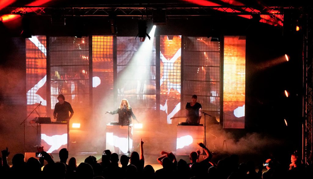 Hellcon Veranstaltungstechnik Stralsund provided Volk with 6 Maverick MK2 Spot, 6 Rogue R2 Wash and 6 Rogue R1 Beam fixtures. These luminaires were hung above the stage to provide the foundation for a lattice of overlapping, music-heightening visuals.