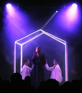 “When approaching a project, I always begin with the band. I like to spend as much time as I can getting a feel for what the current tour is all about and what they want to convey. In the case of Woman’s hour, Fiona Burgess, the lead singer, had an idea of what she wanted her performance to look like. Together, we took that as a starting point for the house structure, and ultimately the full-fledged design.