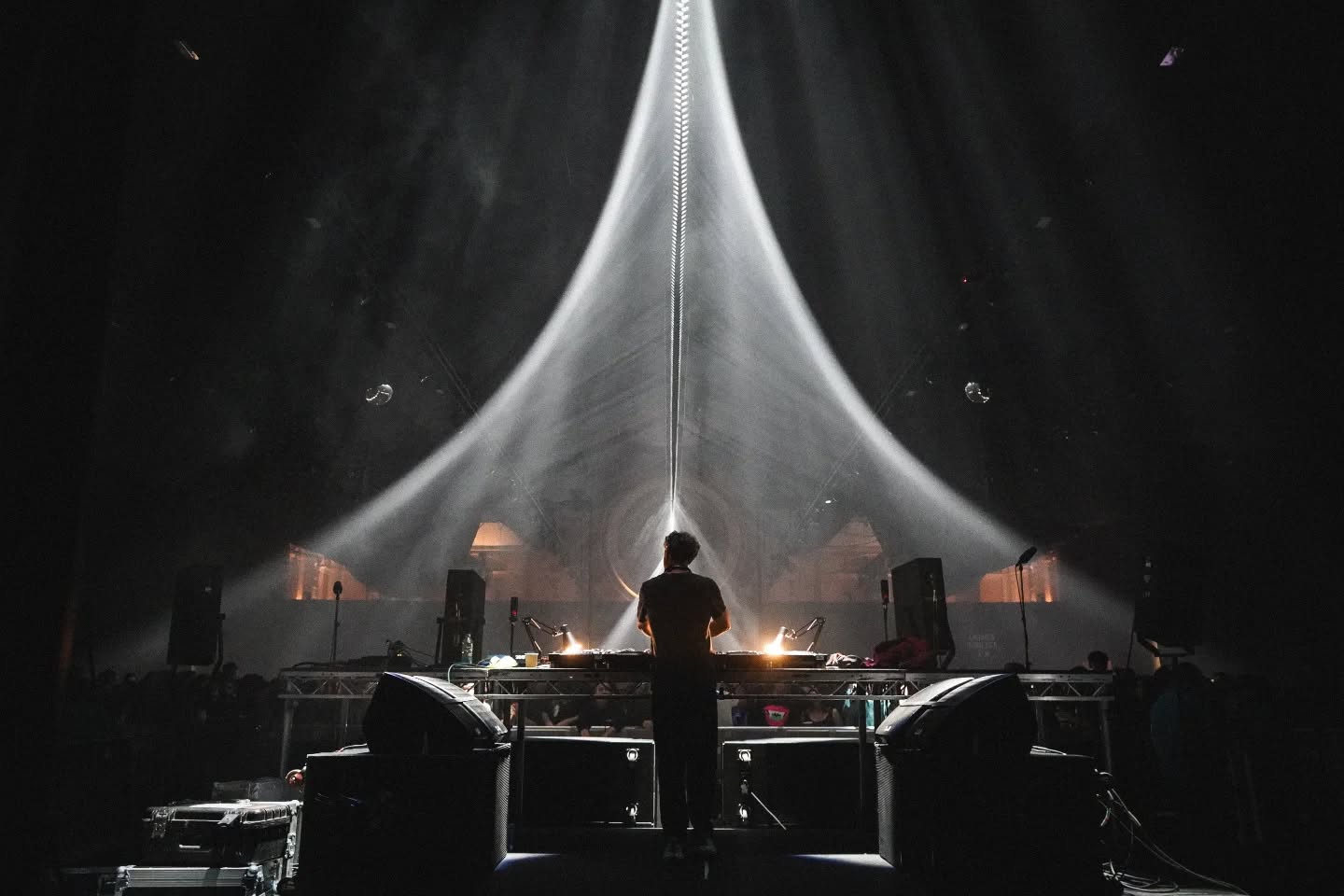 Warren recalled how his vision for the new design began to take shape: “When I learned that Kieran (aka Four Tet) would be performing at larger venues, I wanted to see how long of a bar we could get going an extended space over the audience. I think the idea came to me when I was walking through an airport. I immediately texted Kieran with the idea, and he loved it. We debuted it in Berlin in February, and the November 21 show at Alexandra Palace (where Four Tet has played in the past) was an update/refinement of that.”