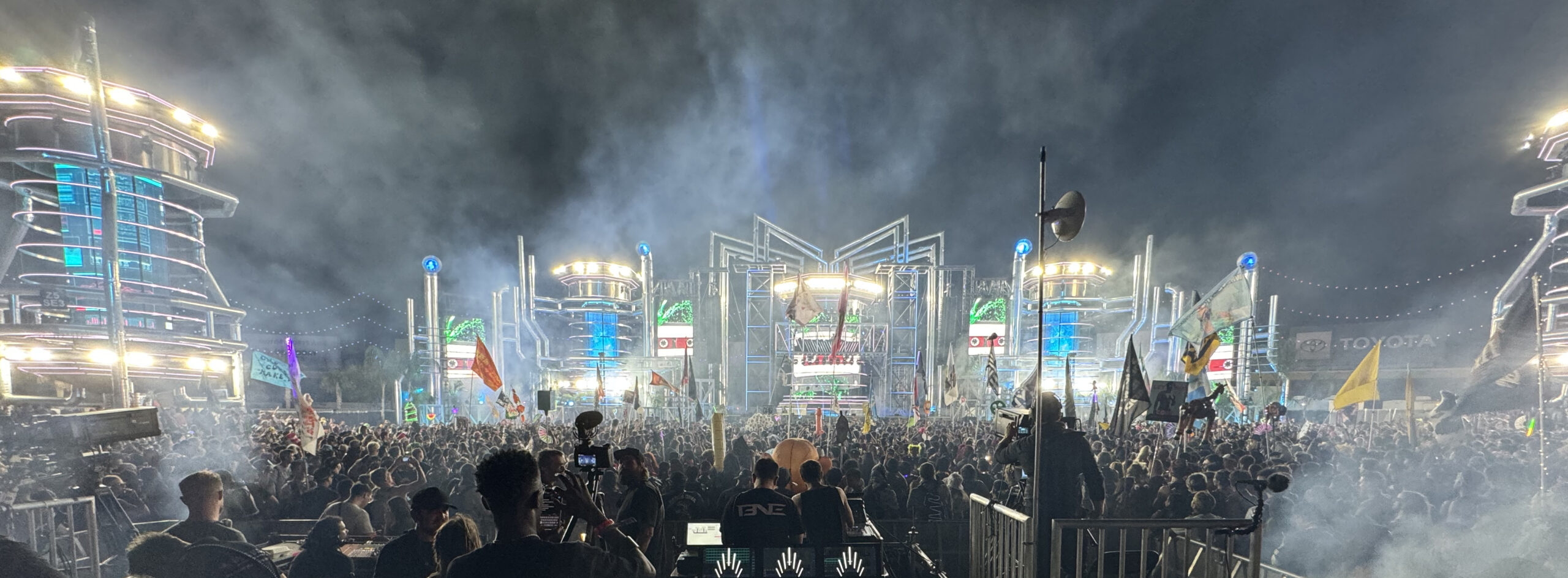 “We did not want to detract from the brilliance this structure has to offer. Lighting from multiple angles is key in lighting a giant metal structure, using fixtures to uplight, front light, back light, and sidelight played an integral role in the success of illuminating bassPOD. The variety in placement also gave us multiple options to light such a reflective structure. Since this is a three day show, we wanted as many tools as possible to vary the lighting of the structure. We also used a variety of fixture types to ensure BASSPOD was lit properly, while also keeping in mind operation for such a fast paced style of music.”