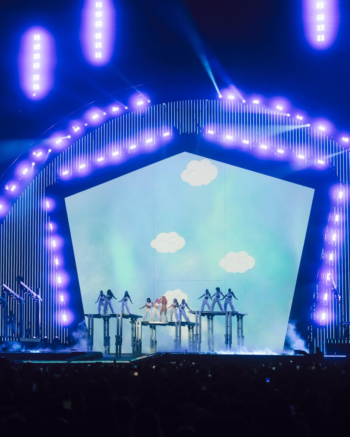 Creating looks that were “different” was just the beginning for Rosenberg and his team: lighting director Danny Navarro, as well as programmers PJ Carruth, Rob Smith and Josh Lowenstein. Throughout the show, they supported Karol G’s performance with an endless stream of richly varied and engaging looks from the playful with a lot of primary and pastel colors, to celestial with twinkling displays of light, to the sultry and sophisticated. In short, they embraced every dimension of this powerful star in light.