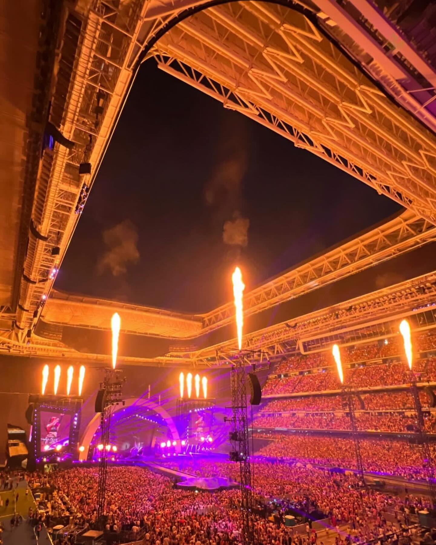 While 35 of the Color STRIKE Ms outlined the arch, the remaining 275 units were located throughout the rig, doing things like framing the set’s two large IMAG screens, as well as lining a smaller pentagonal screen and four FOH delay towers. For the Madrid shows, 68 more Color STRIKE M fixtures were added to the circumference of the stadium. Not only did this enliven the onsite atmosphere, it also added volume and depth for the livestream.
