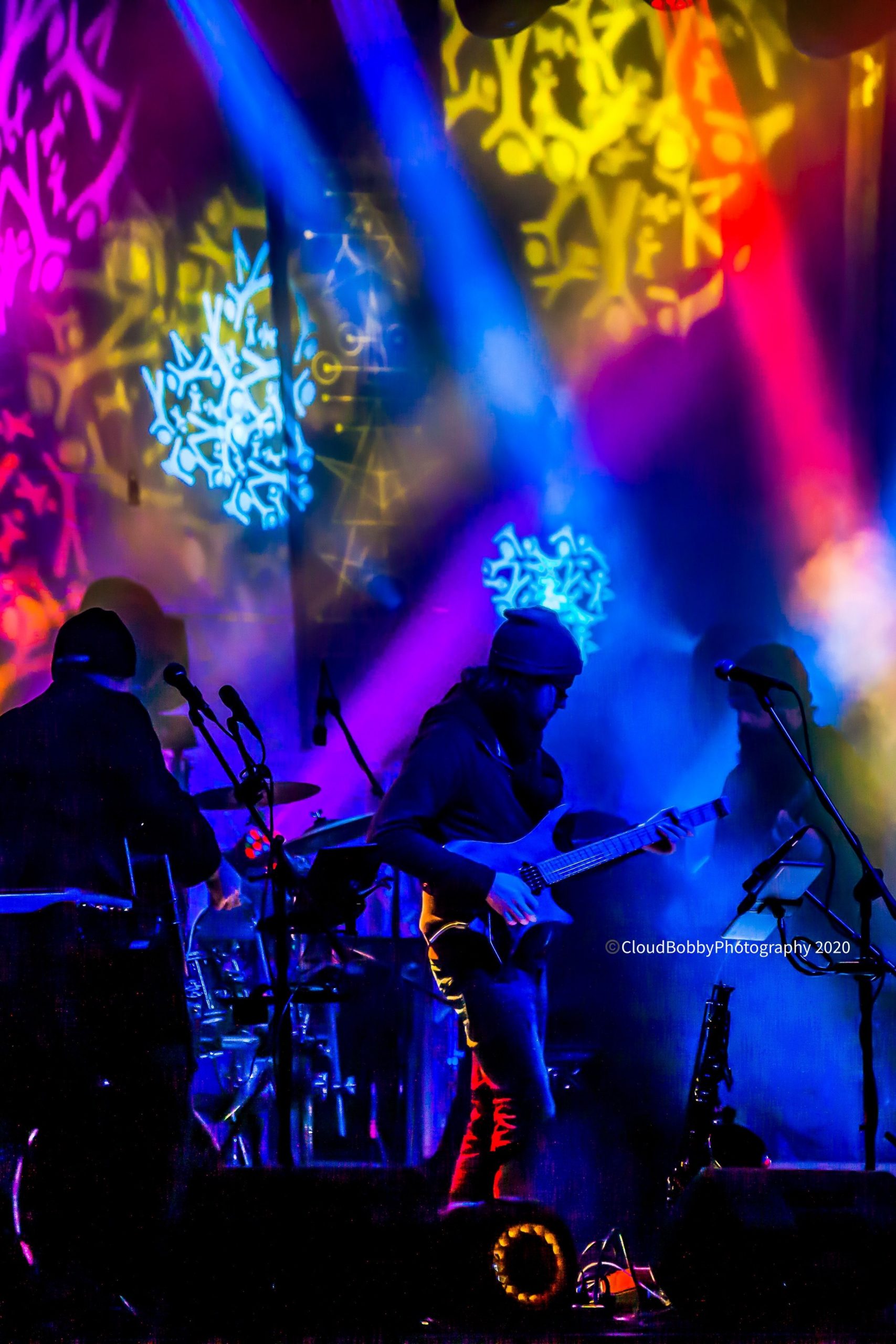 For the Five Points benefit, Patsel lit a concert by the popular Pink Floyd tribute band Darkside Experience, a talented quintet that captures the essence of the legendary British Rockers with their evocative and challenging sound. Patsel‘s design reflect the quintet’s music and onstage persona with its bold colors and unsettling light angles.