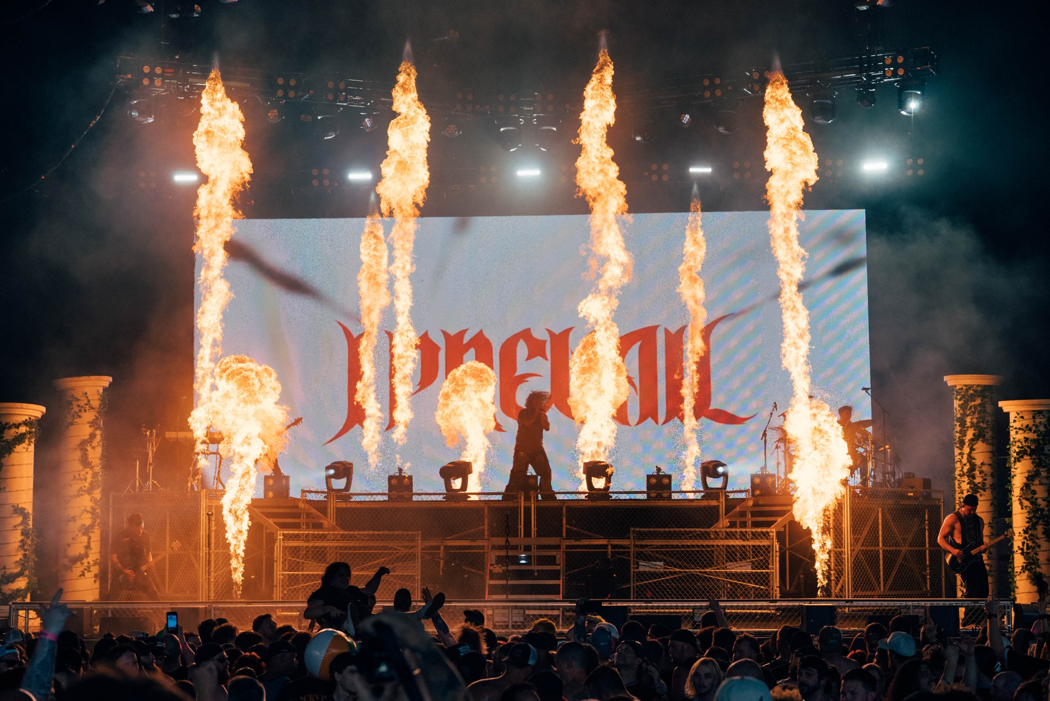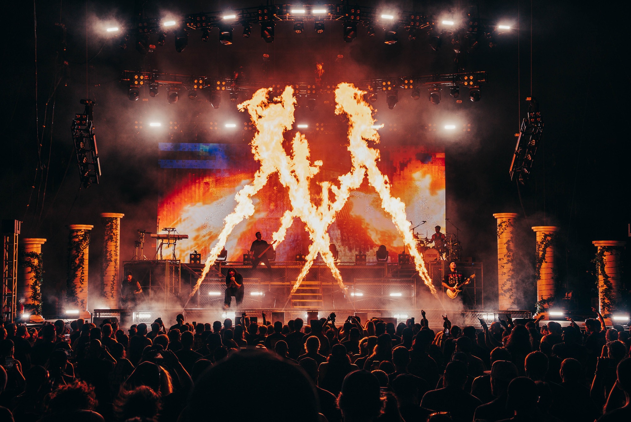 Throughout I Prevail’s shows on the tour, the fiery effects underscored the core character of the band’s performance. Nevertheless, Maker was careful to arrange the pyro units so they did not block the lighting, which he saw as essential to “sculpting the band differently from song to song.”