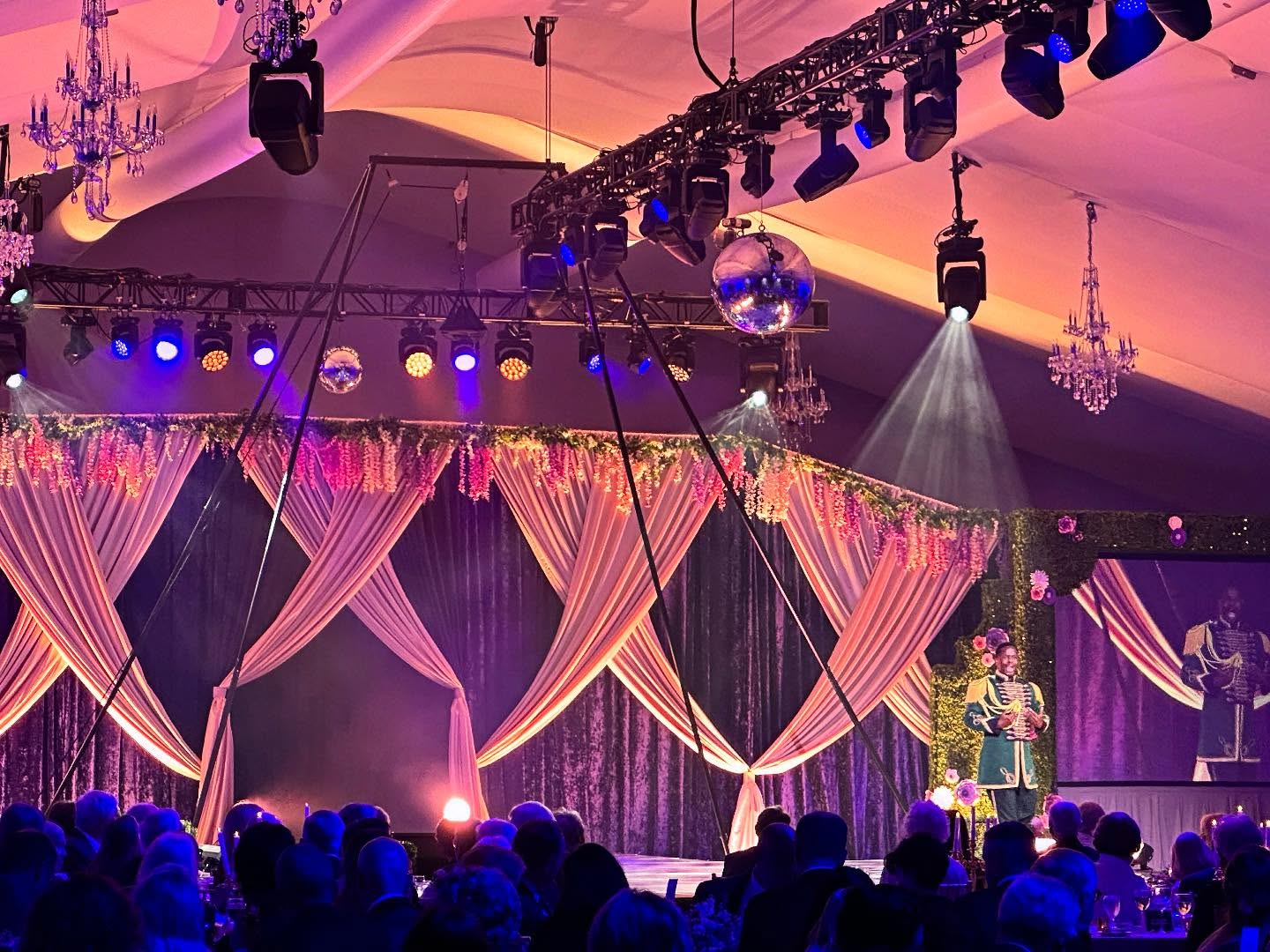 Lawlor, who lit the stage, and 45 guest-tables, as well as the walls and ceiling of the gala’s tent, did his part to make the evening special. Helping him in this endeavor was a collection of 85 CHAUVET Professional fixtures supplied by Encore Global.
