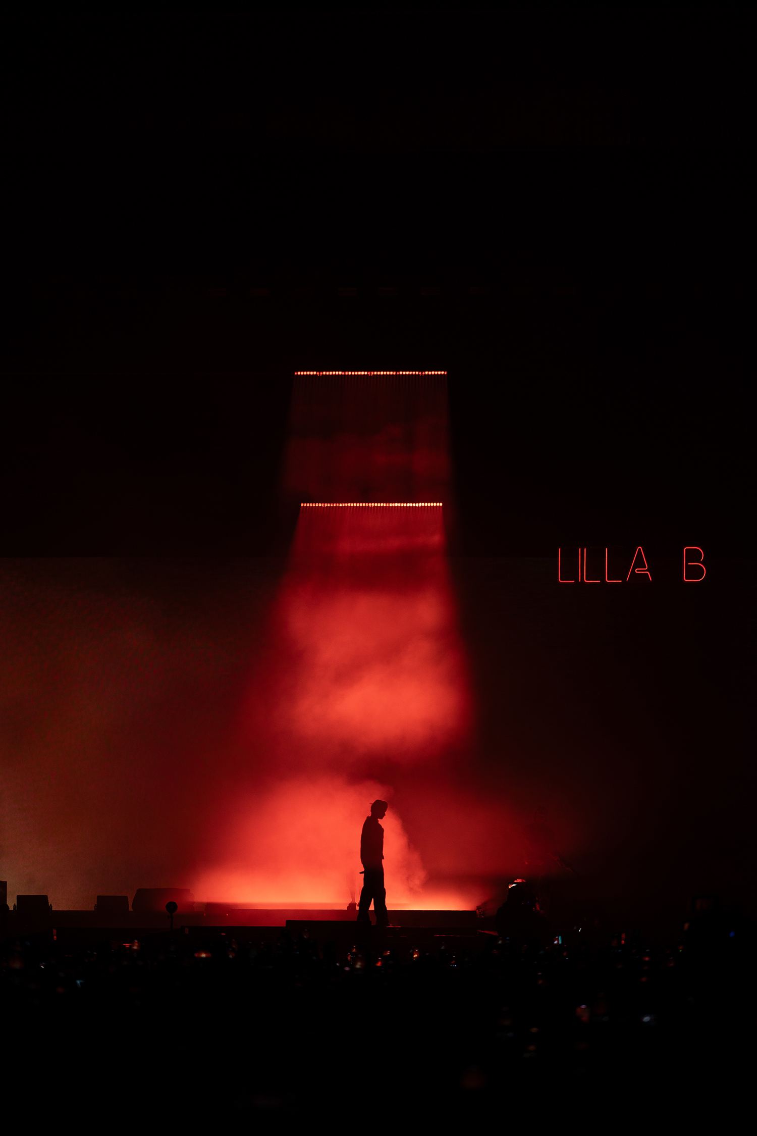 At times, the stage was mostly black with shafts of bright light running from its deck to the top of its trim. At other times, it took on sweeping horizontal looks dominated by a video wall accented by bright light, before it was transformed again by pyro effects and haze.