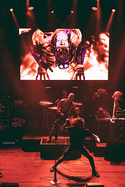 Fans may not have been present at the theatre, but head banging energy and excitement sure were, with Code Orange’s raw, in-your-face sound reverberating off the walls of the 91-year-old venue. The place was pulsating with visual energy too, as a mind-blowing array of content created by Shade was flashed on a massive 9’ x 11’ center stage video wall created with CHAUVET Professional F2 panels supplied by Star Design Event Services.