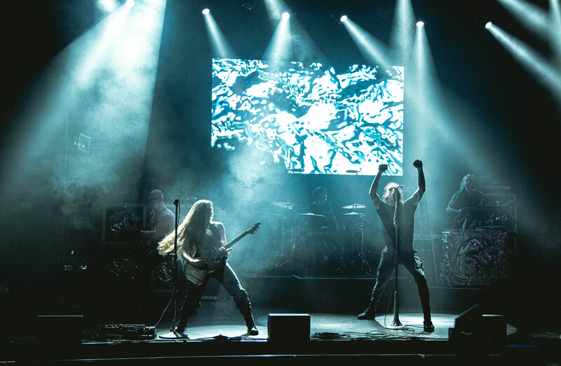 The videographers had an abundance of great animated content created by Shade to work with. Running through a series of deep apocalyptic images that looked as if they were plucked by Orpheus from Hades’ underworld, the video displays set an evocative tone that crackled with energy as it reflected the aggressive metal music. Adding to the mood were copious levels of fog and intense lighting from a house rig that featured CHAUVET Professional Maverick MK2 Washes.