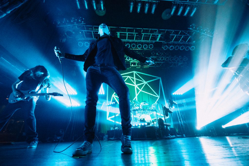 NEW YORK – Mike St-Jean says he was eager to challenge himself as a lighting designer when he signed on for TesseracT’s current tour in support of their fourth studio album Sonder. He certainly got what he wanted. The British progressive metal band has a penchant for pushing music in new and unexpected directions with their magical blend of polyphonic grooves, unique time signatures and other nuanced sounds. St-Jean more than kept pace with these musical twists and turns by creating a flowing variety of unique looks with help from a collection of CHAUVET Professional Rogue fixtures, supplied by Squeek Lights, and his ChamSys MagicQ PC with a MiniWing.