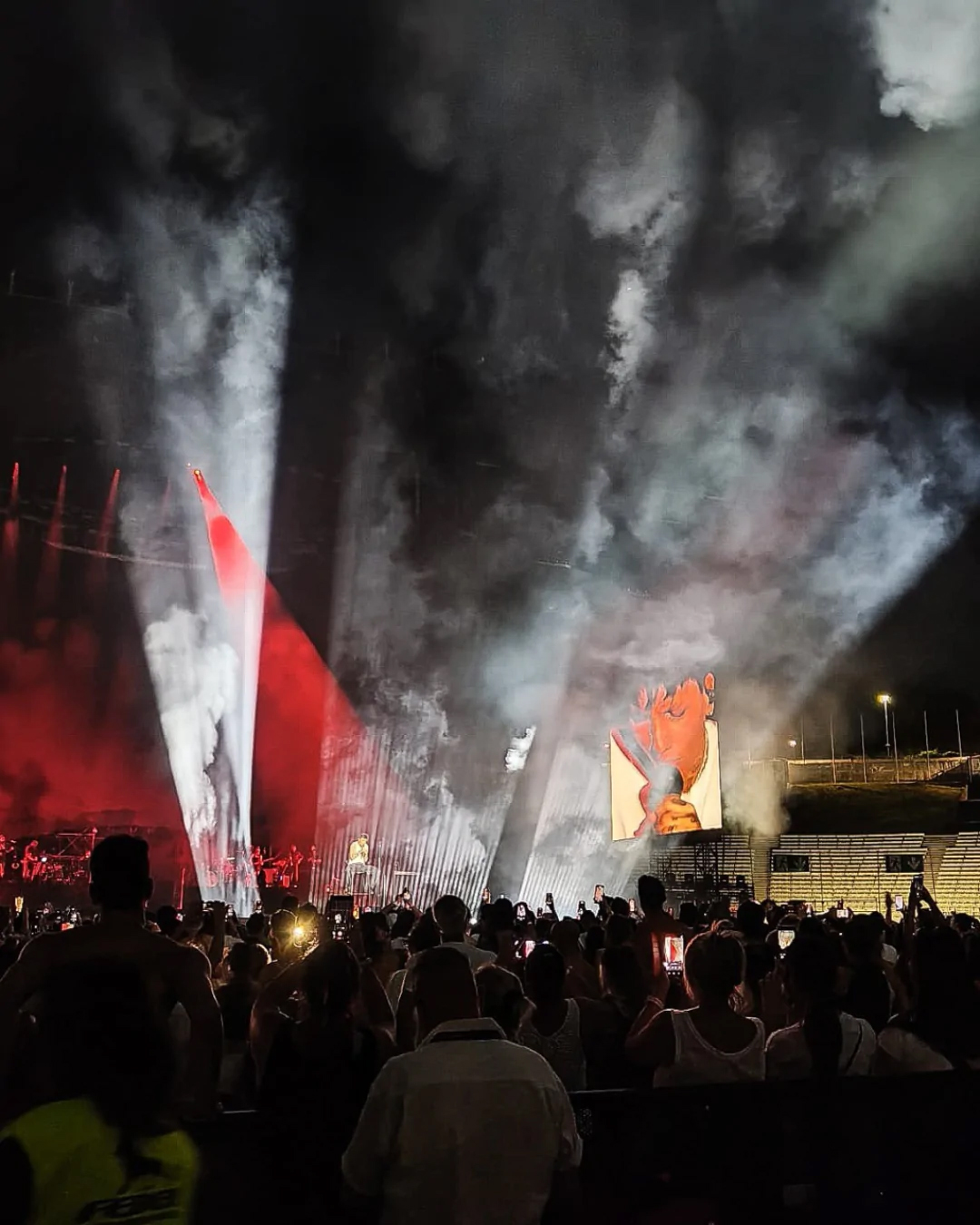 The 65-meter long by 24-meter-high stage on Ultimo’s tour supports his flight of imagination and passion The set had a 30-meter catwalk, designed in the shape of the key that the artist wears around his neck, a symbol of his musical journey. A captivating sense of movement and intimacy was created as the singer walked down this catwalk, often touching fans as he went that made the tour’s big venues seem intimate.