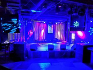 It was an ideal fit. Drawing on his audio experience, he became skilled at busking along with visiting jam bands, most of which turned up at the club without their LDs, as they set forth on their improvisational journeys. Keegan’s resourcefulness isn’t limited to his lighting console either, as he often has to come up with innovative ways for bands to arrange their floor package truss, given the unusual shape of the second story club’s stage.