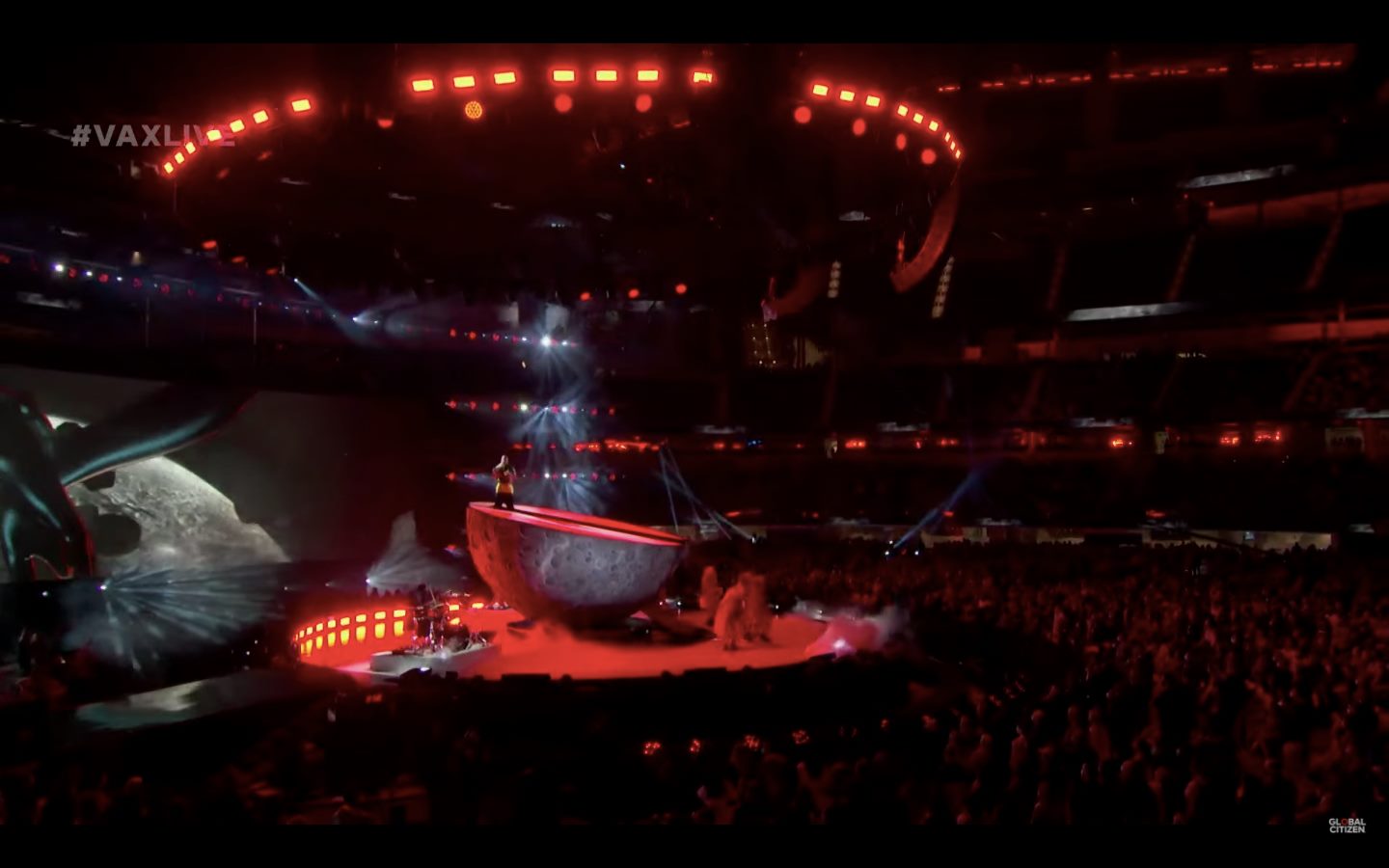 The circular stage with its curved backdrop and video wall were reflective of the concert’s mission. “A red circle, as in the letter ‘O,’ is the symbol of Global Citizens,” said Kenny. “Plus, there is an embracing sense conveyed by a circle; it’s like putting your arms around someone. So I was envisioning making curves and circles key elements in the design as was our set designer Tamlyn Wright. The rounded stage provided a lot of great camera angles, all of which we supported with light.”