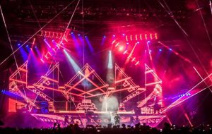 Setting the visual tone for the concert and reflecting the growing maturity of Bieber as an artist was a Cory FitzGerald-designed multi-faceted Purpose tour lightshow. Providing some intense crowd and stage illumination for the tour’s Lima stop was a collection of 60 CHAUVET Professional Maverick MK1 Hybrid moving heads, supplied by DBLUX-SAC, which provided audio, lighting, video and power for the concert.