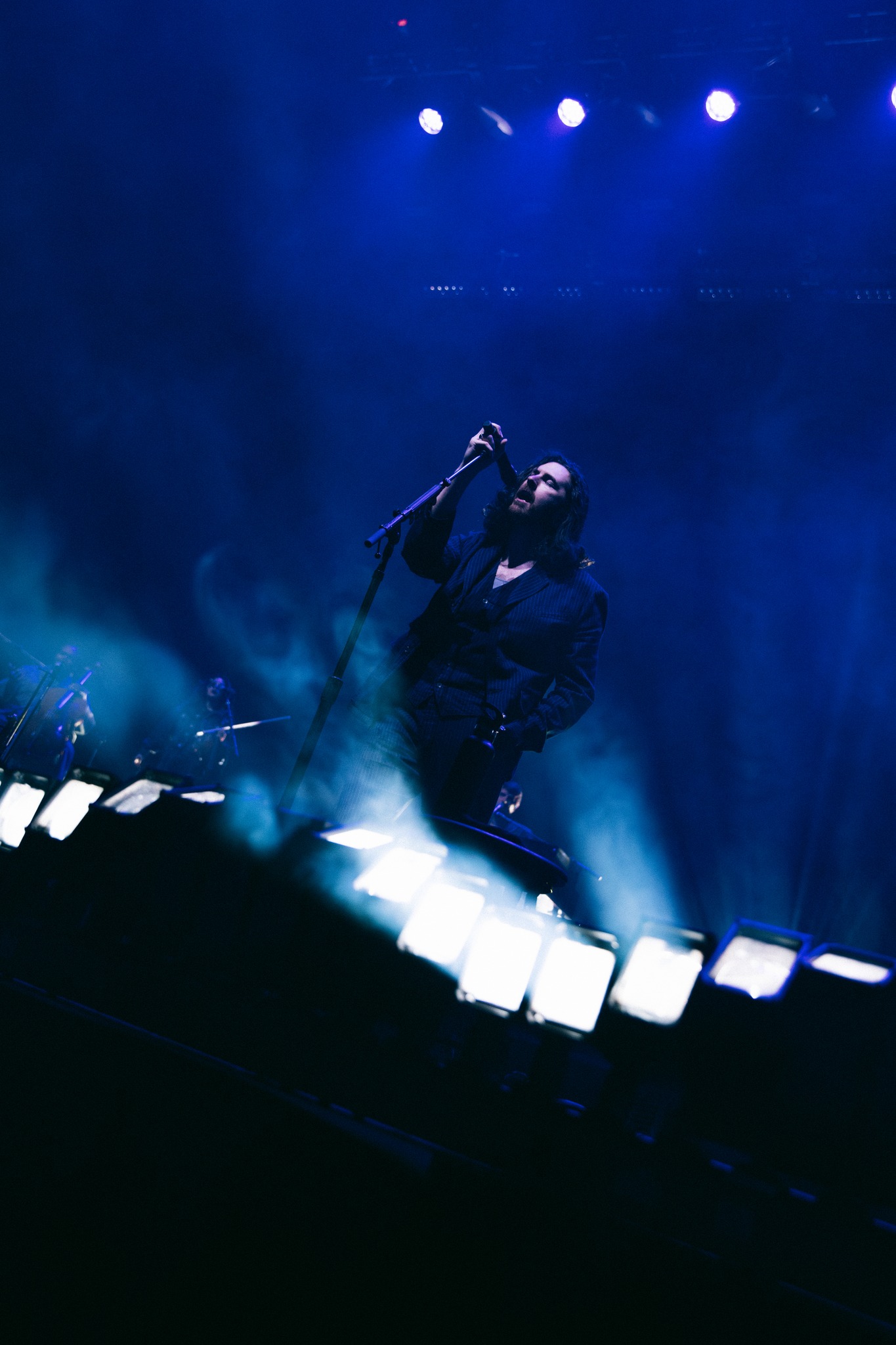 Sometimes, this connection isn’t obvious. For example, when Hozier performs his haunting hit “Unknown,” with its lyrics describing a lake of fire, one would expect to see reds and other warm tones covering the set. But instead, Douglas artfully blankets the stage in icy cold blues and whites.