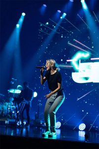 Given the sophistication of its video equipment, the campus needed a lighting system that could deliver optimal color temperatures and smooth, even fields of light with no distractive shadows or flickers. The lighting rig also had to operate silently. These considerations led to the specification of the CHAUVET Professional gear, such as the 48 Rogue R2 Wash fixtures that are flown over the stage and used for down washing audience lighting and specials, as well as the 10 Maverick MK3 Washes that are positioned upstage on the floor for low back lighting and visual effects.