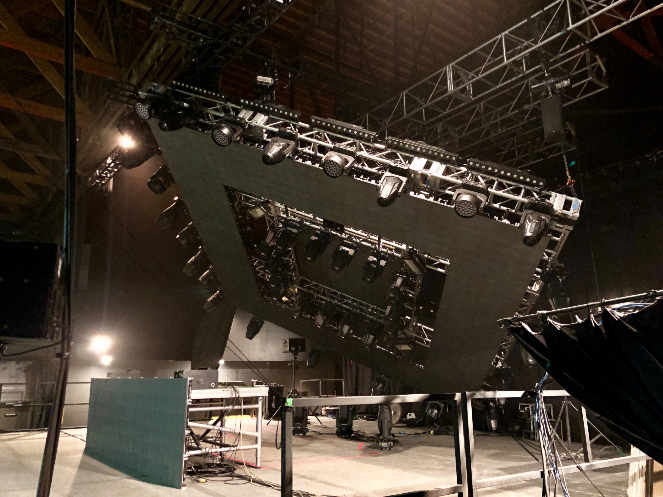 “The building used as the core for Saltair III was originally an airplane hangar on a military base close by. In 1981, it was dismantled and transported to where it stands today. The façade was added to make it look like the two earlier Saltairs that burned down. It did undergo a structural analysis so we know what we can safely hang, but everything is hard points — we cannot add any new points.”