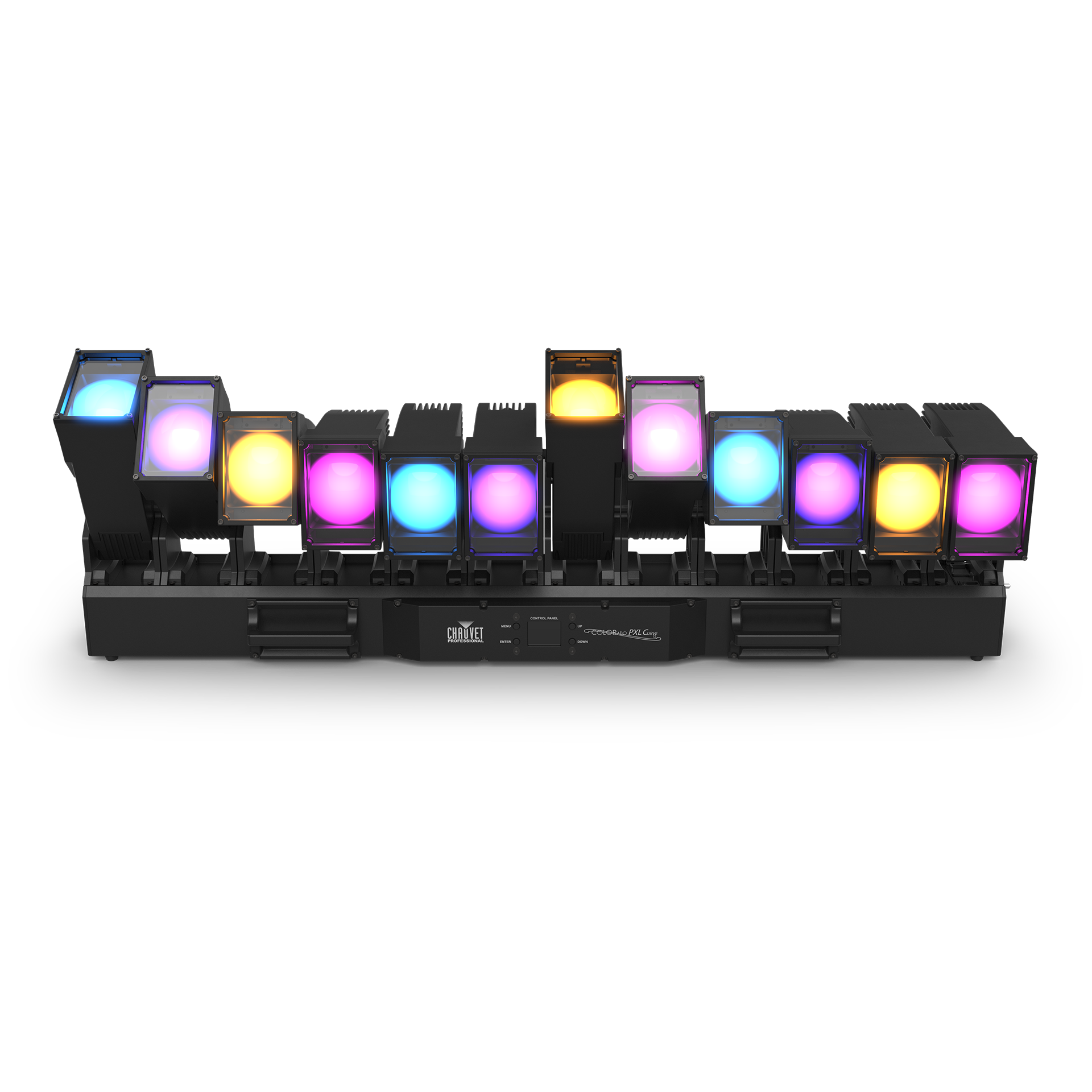 A fully pixel-mappable, motorized IP65-rated RGBW LED batten that offers individual control of zoom, tilt, and color across its twelve independent heads for creating complex, volumetric looks.