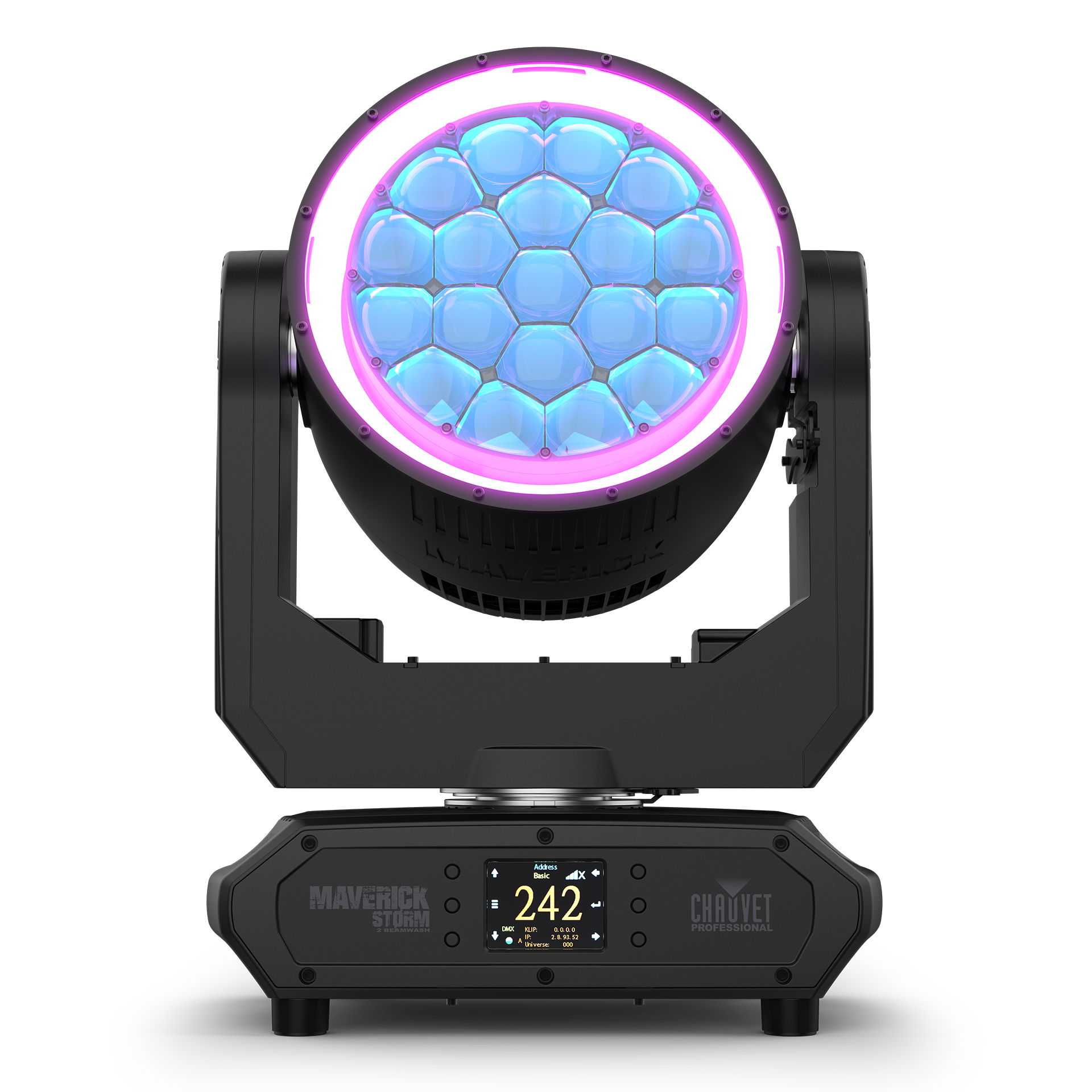 Unleash your wildest ideas with the Maverick Storm family of IP65 moving heads from CHAUVET Professional. These lighter, brighter fixtures deliver stadium-power performance and an arsenal of effects, giving you the tools to command any arena, whatever the weather.