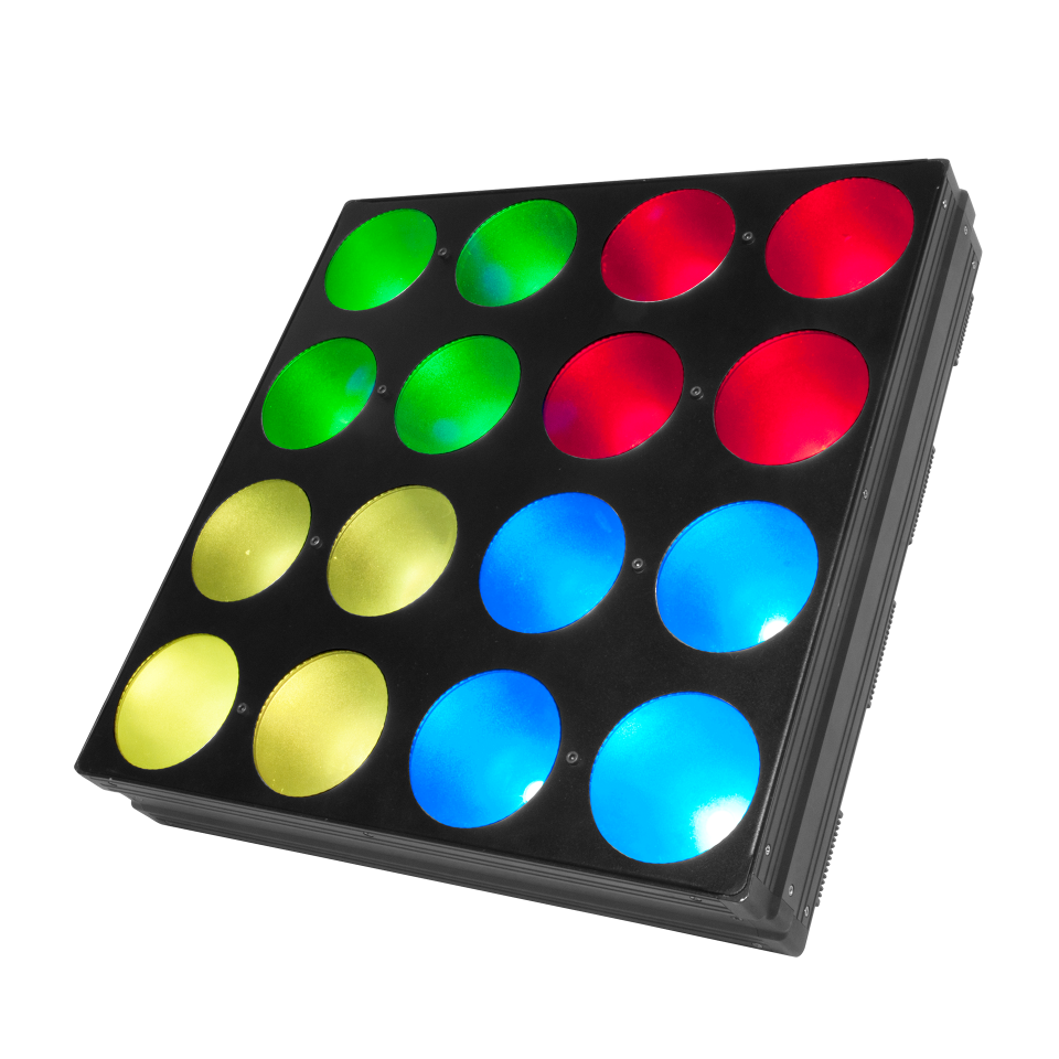 A versatile LED wash panel combining pixel mapping capabilities with sixteen powerful tri-colored COB LEDs to produce a robust and richly saturated wash of diffused light.