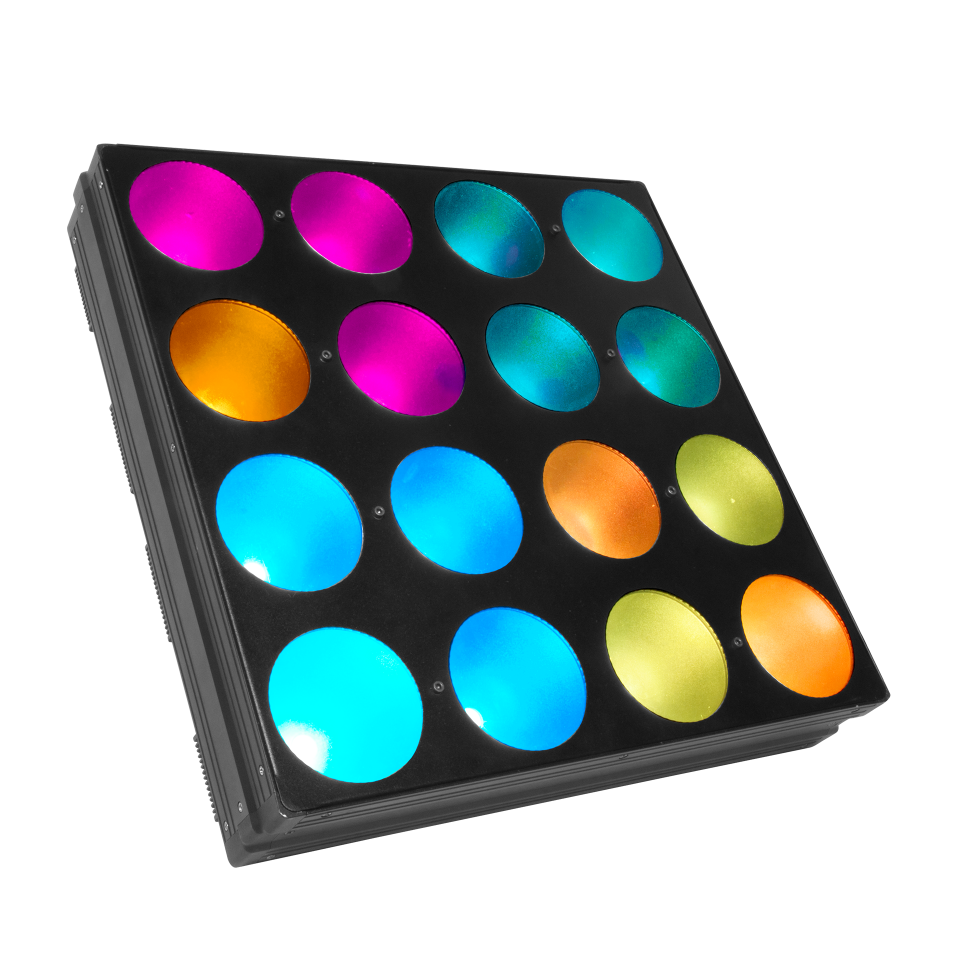 Its unique look comes from combining powerful, tri-color LEDs with a special reflector. This creates a bold yet beautifully diffused wash of rich, saturated color. Because each of the 16 lights can be controlled independently, you can create detailed ‘pixel-mapping’ effects for animated patterns and vibrant visuals.