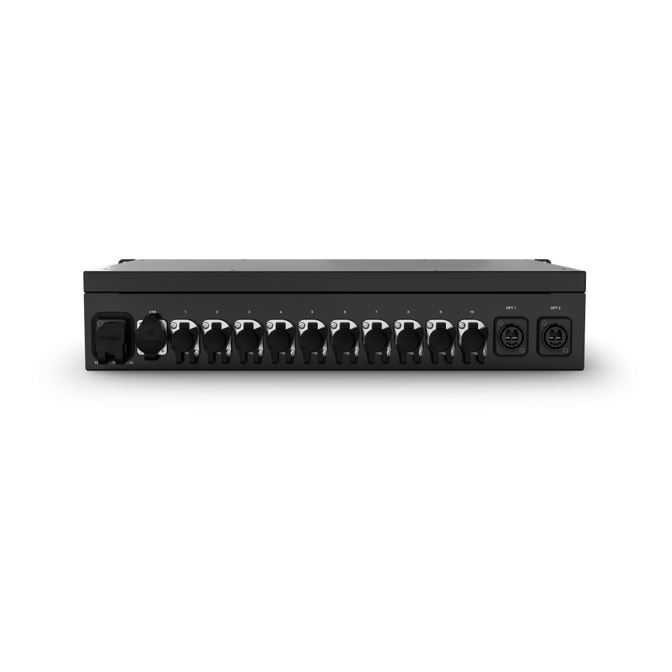 Features ten full-duplex Ethernet output ports to connect to multiple video panel sections or devices.