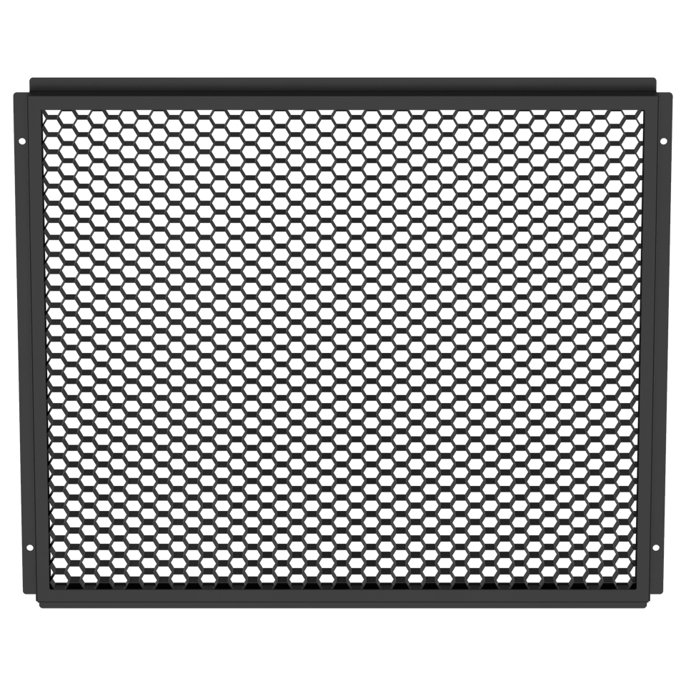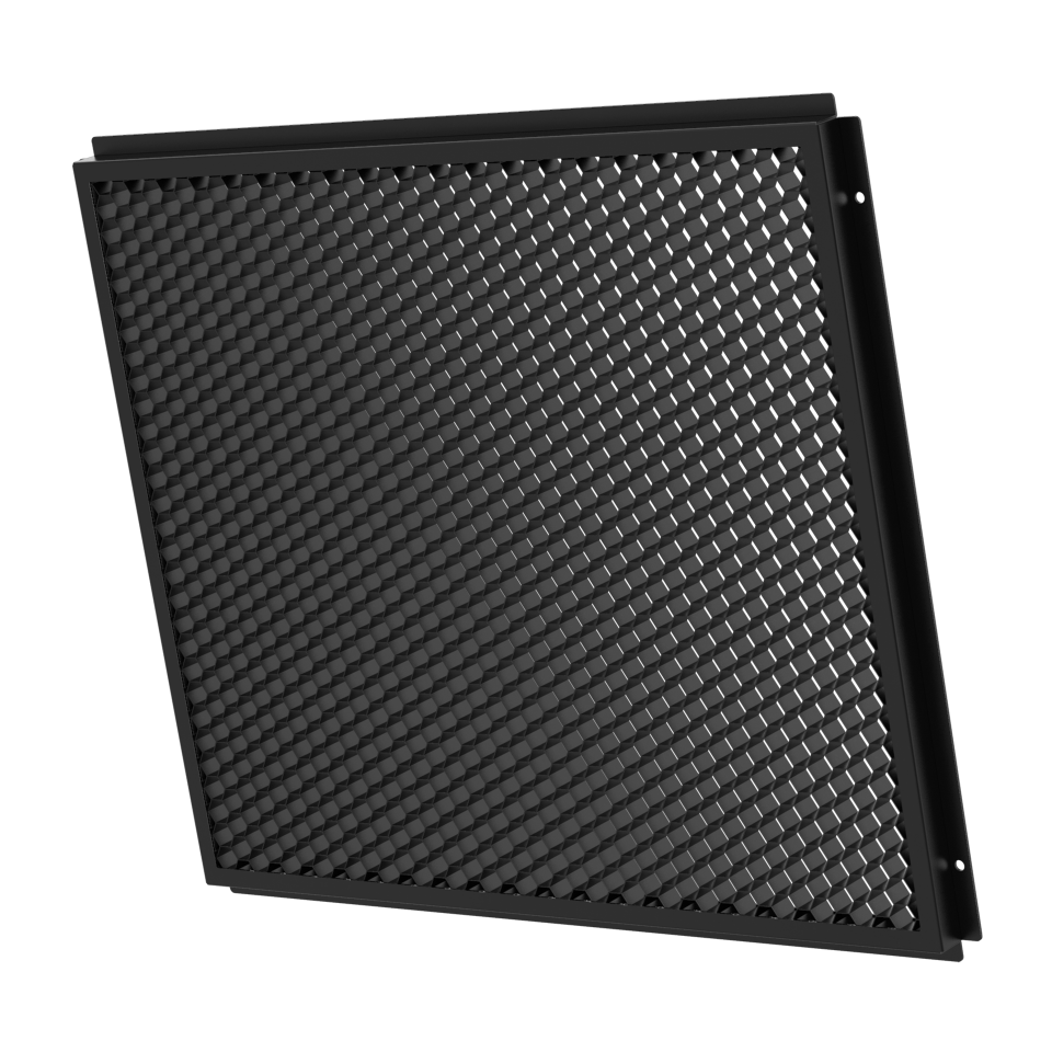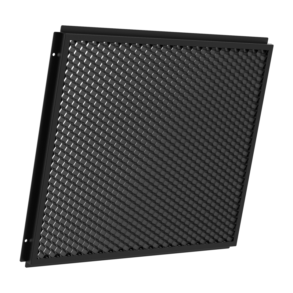 A light control grid accessory designed to manage unwanted light spill by uniformly reducing the beam spread for a more focused output.