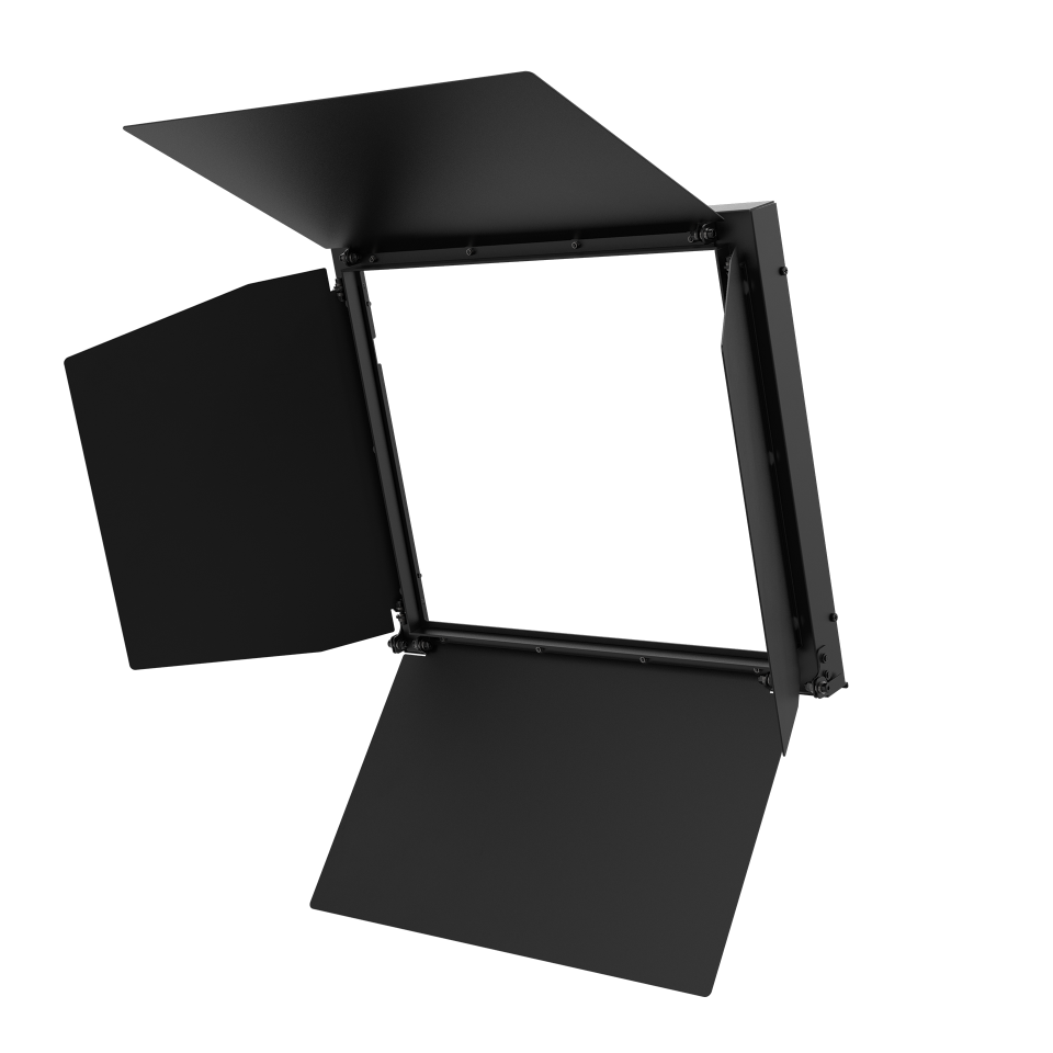 This barndoor is designed specifically for the onAir Panel 1 IP light fixture, ensuring a perfect fit. It easily attaches to the front of the panel for quick, tool-free setup and removal. Once attached, you can manually adjust each of the four flaps to shape the light exactly as needed for your scene.