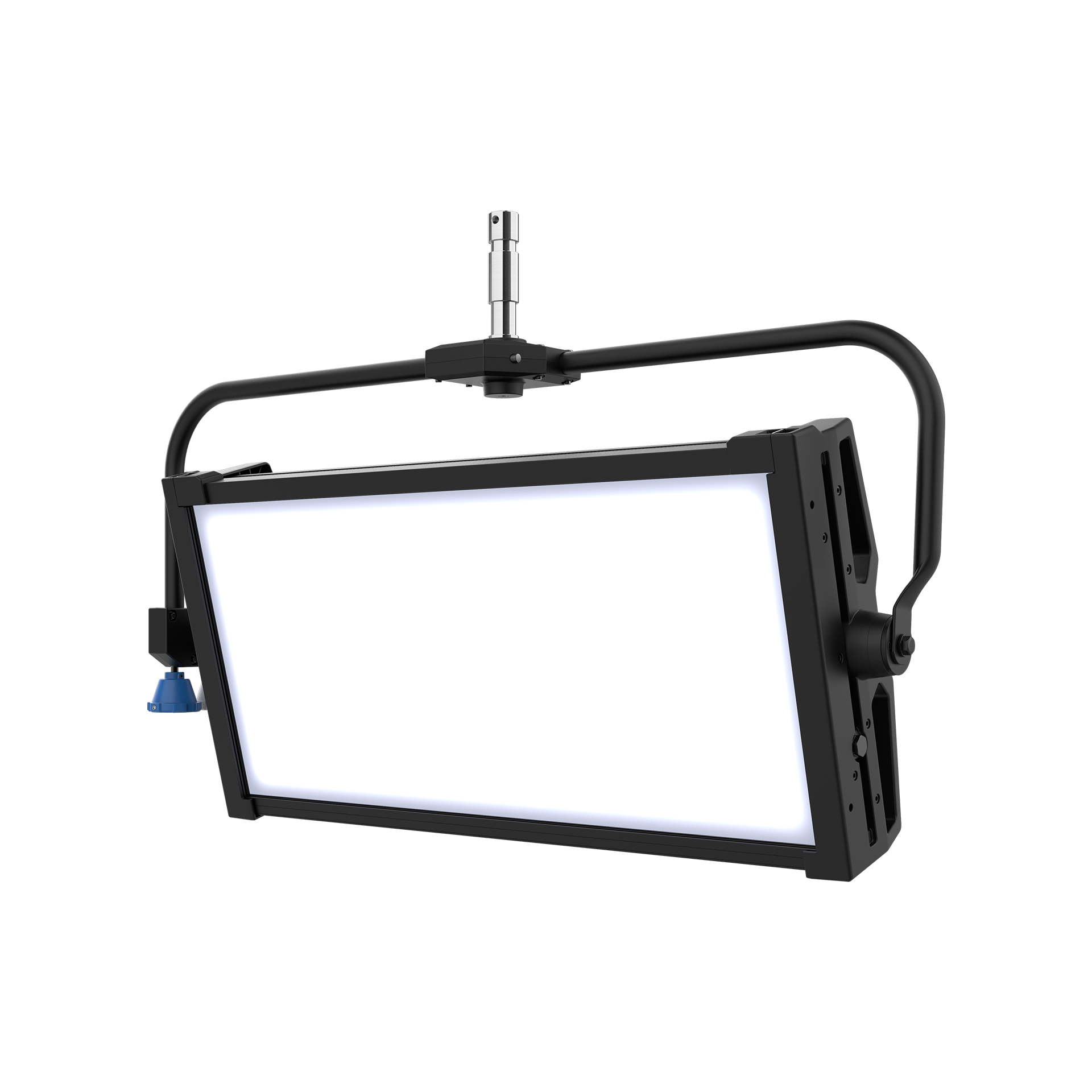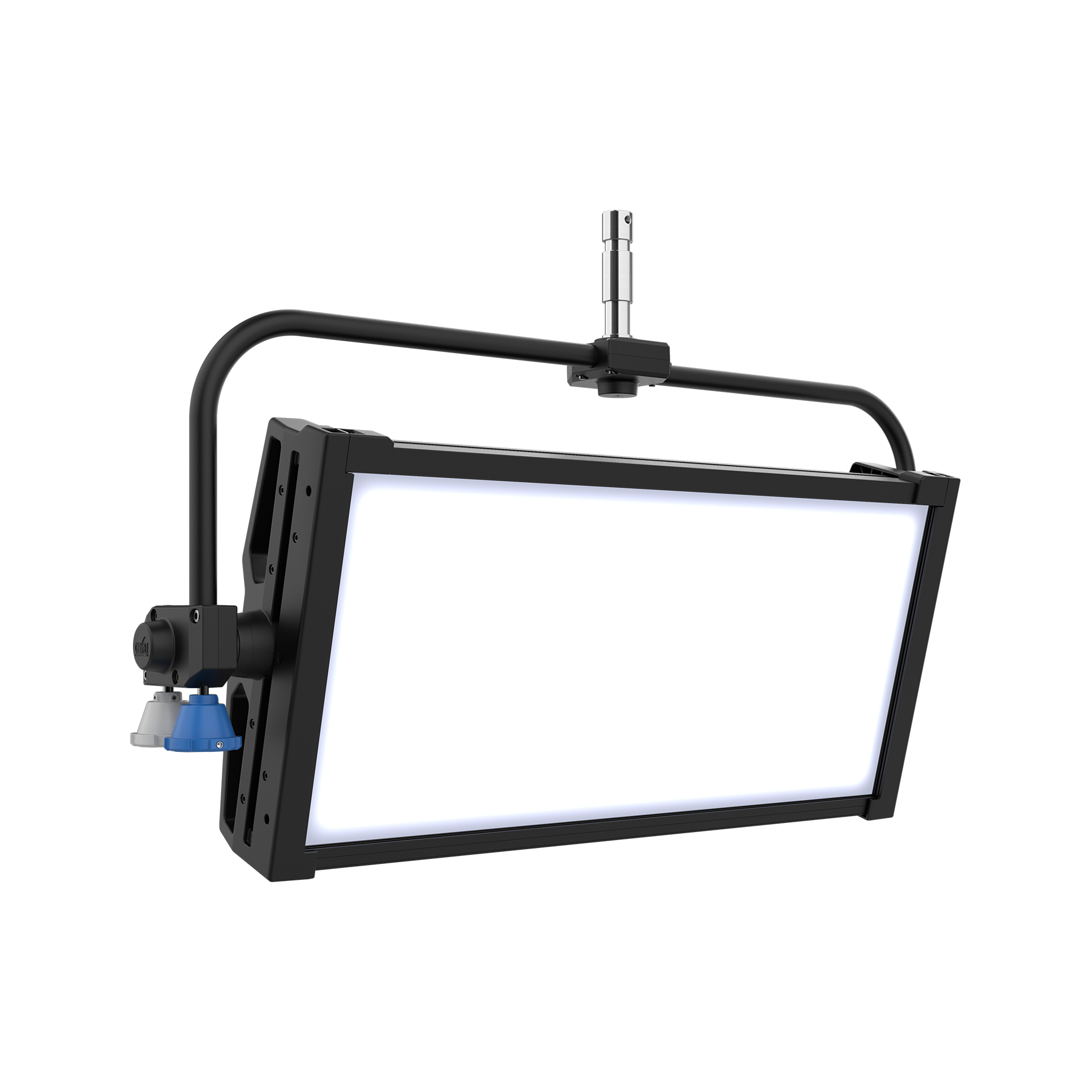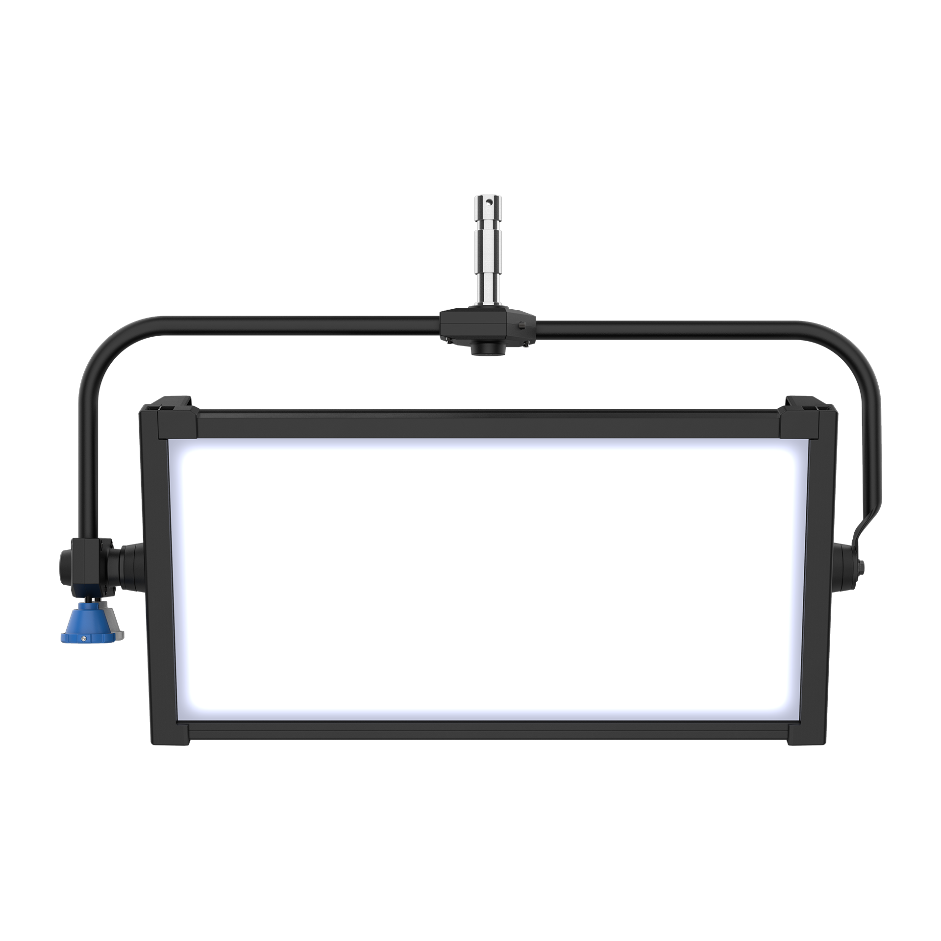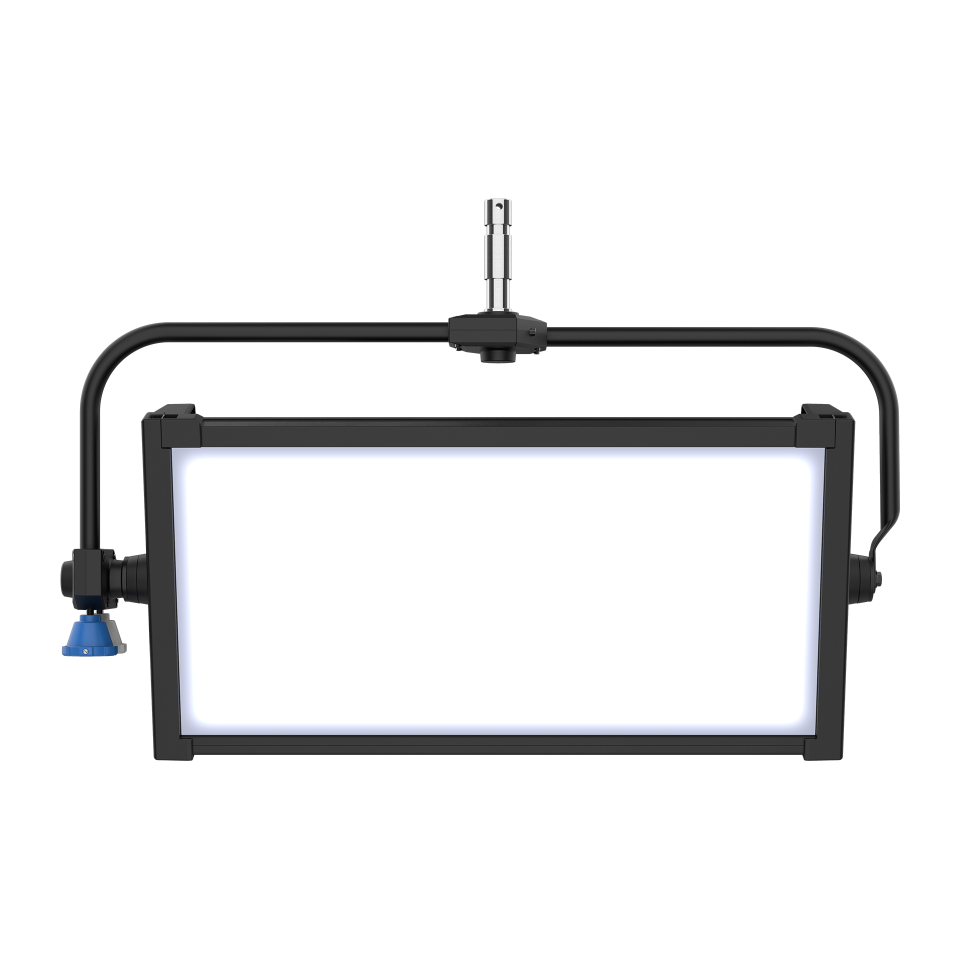 The yoke allows for full manual control. By using an extension pole, you can stand safely on the ground and physically pan the light left and right or tilt it up and down to get the perfect angle.