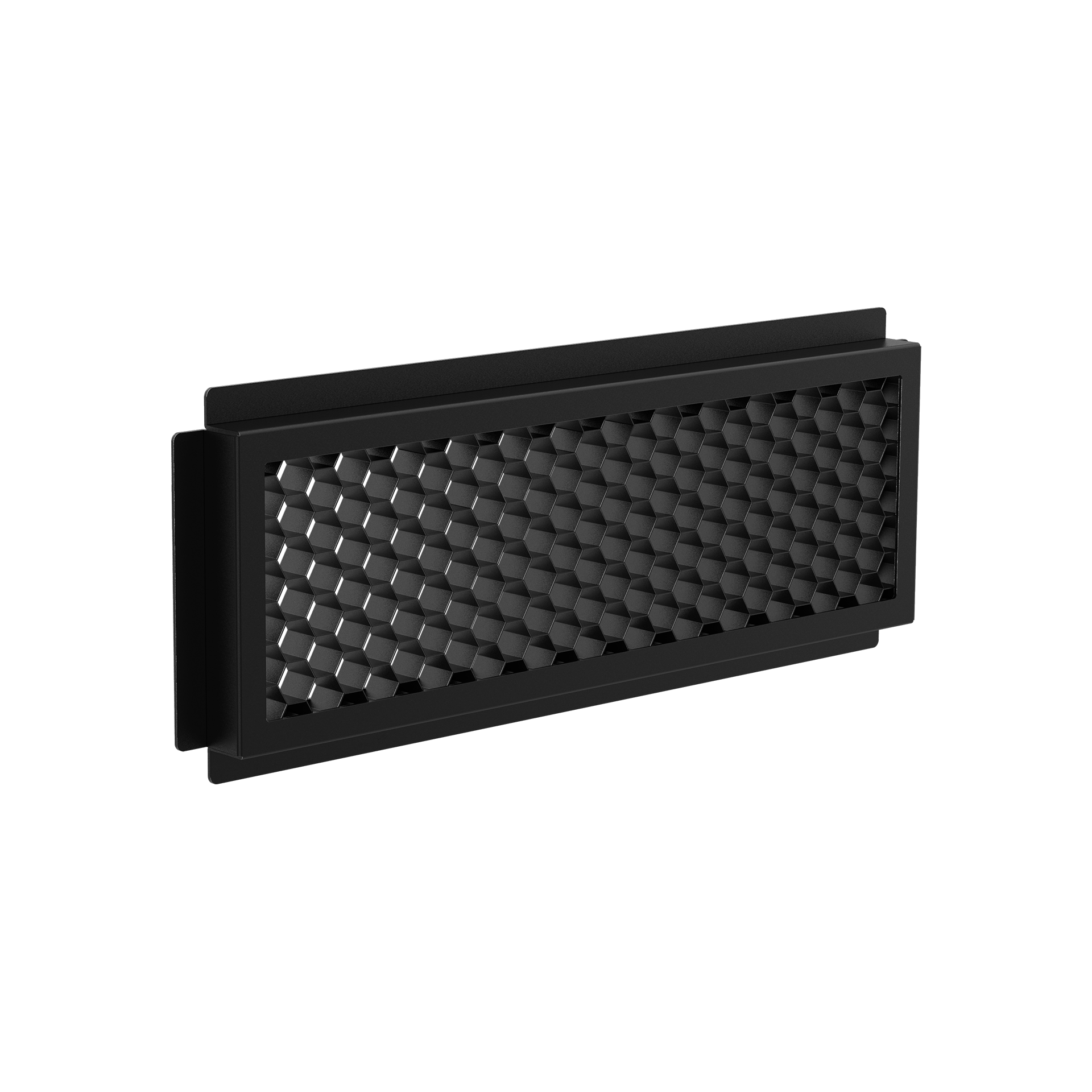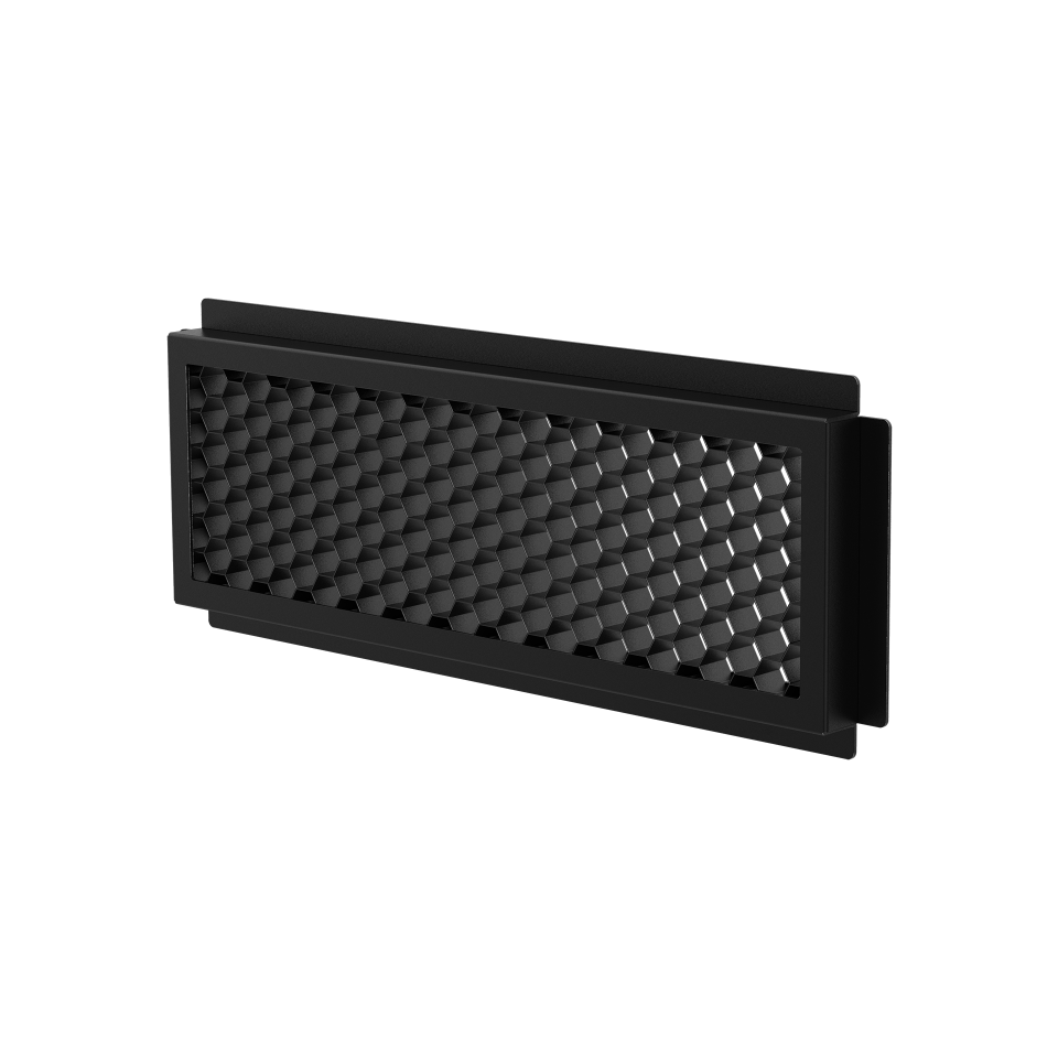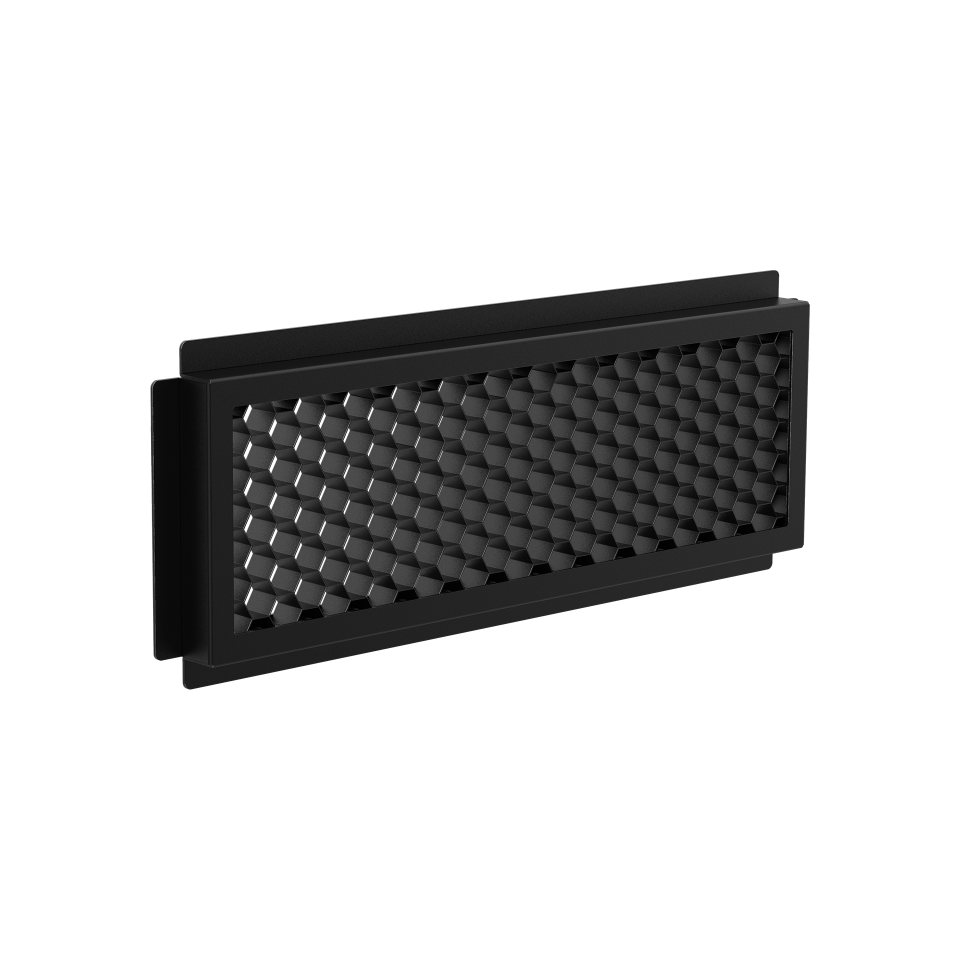 Installation is simple and requires no tools. The honeycomb grid is designed to slide easily and securely onto the front of the onAir Panel Min IP light fixture, allowing for quick changes on set.