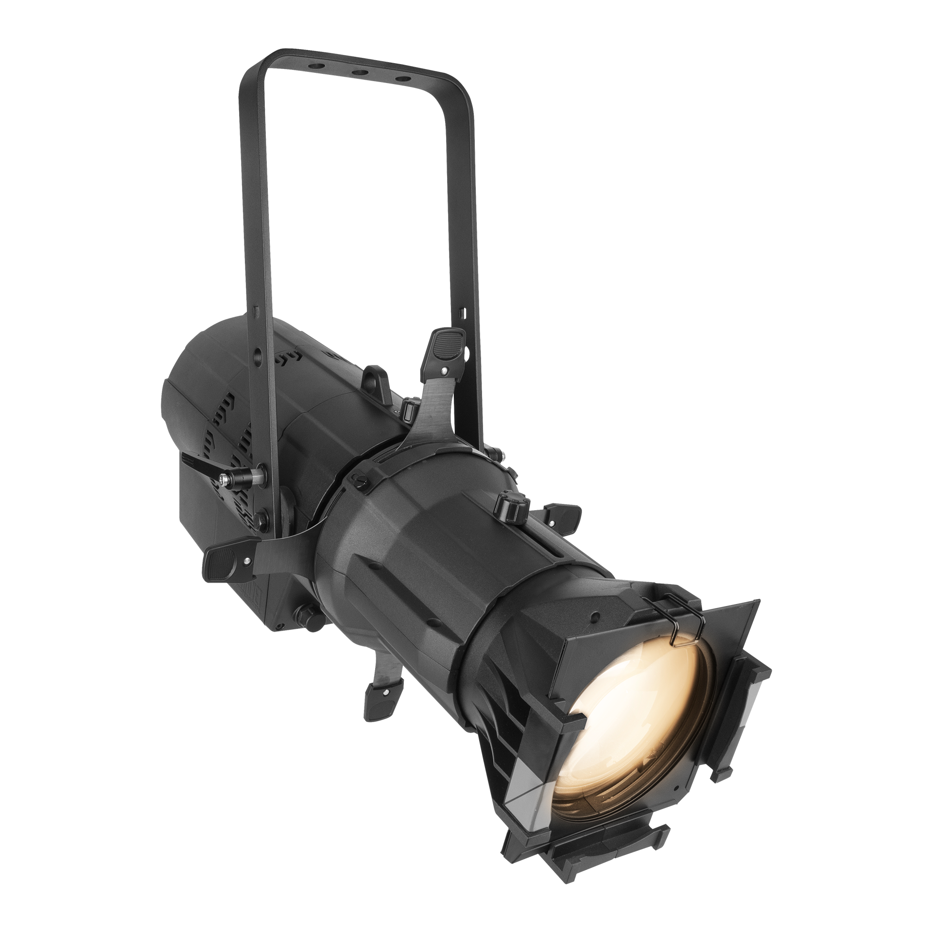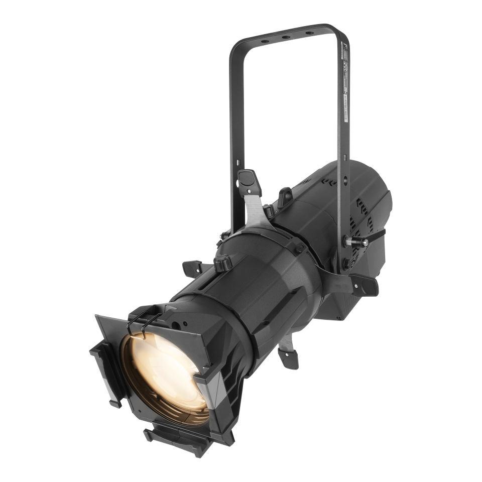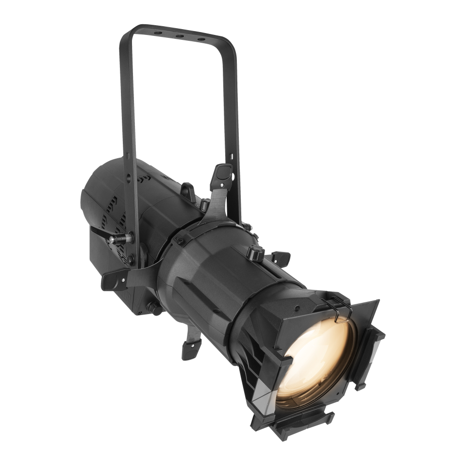 This is a very bright, warm white spotlight ideal for theater, events, and broadcast. It produces a flat, even field of light that is perfect for projecting crisp, clear patterns and logos (gobos). Its beam can be precisely shaped using standard shutters and lenses, giving you complete control over your lighting.