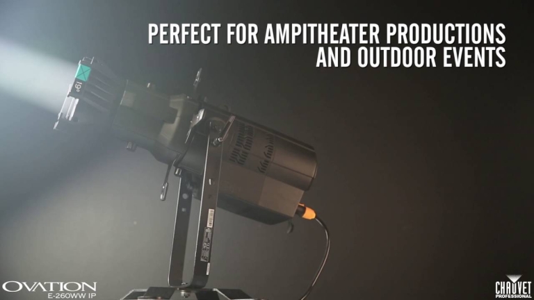 The Ovation E-260WW IP from CHAUVET Professional brings the brilliant performance of an ERS-style fixture outdoors. Its IP65 rating, powerful warm white output, and superior gobo projection empower you to create stunning theatrical and architectural designs in any weather.