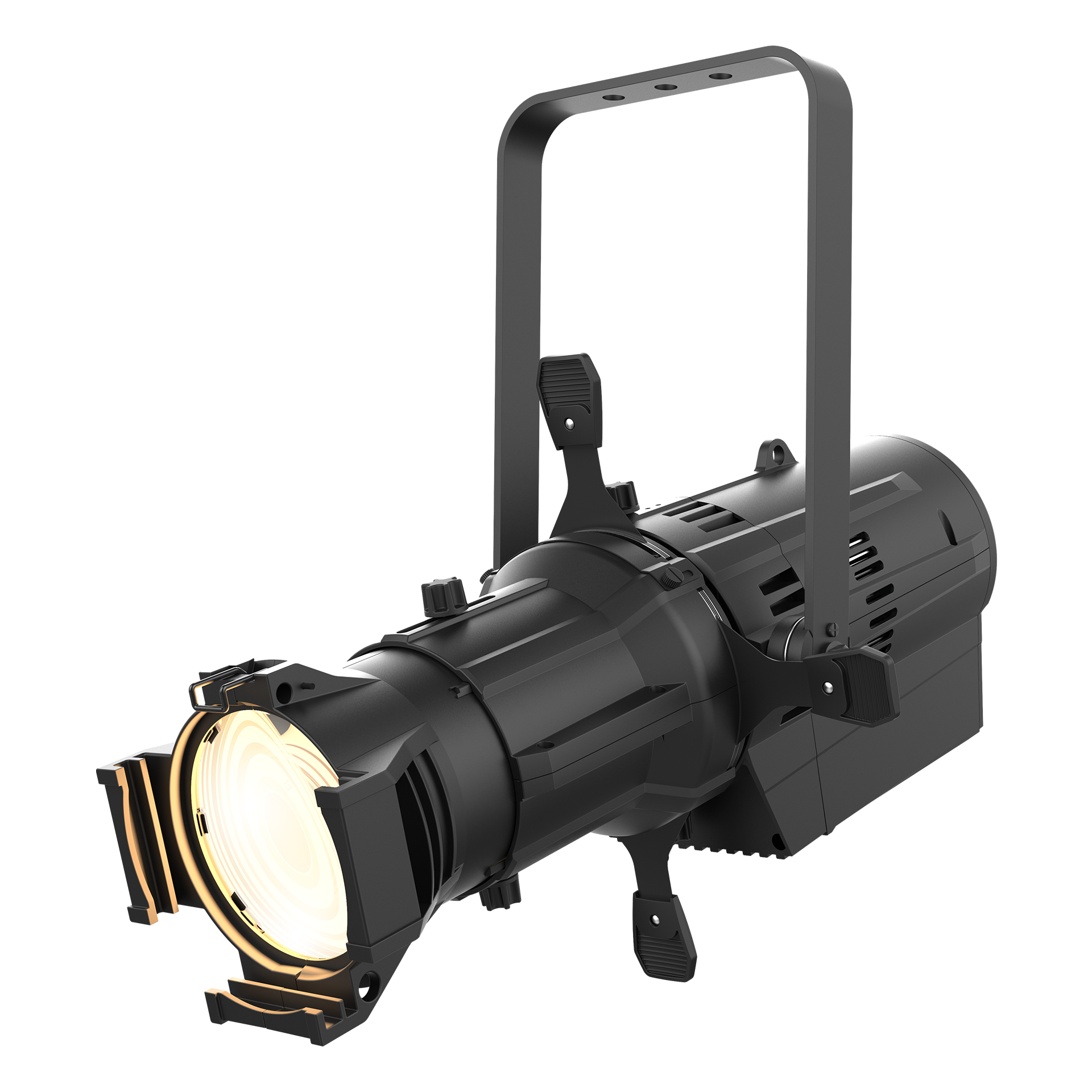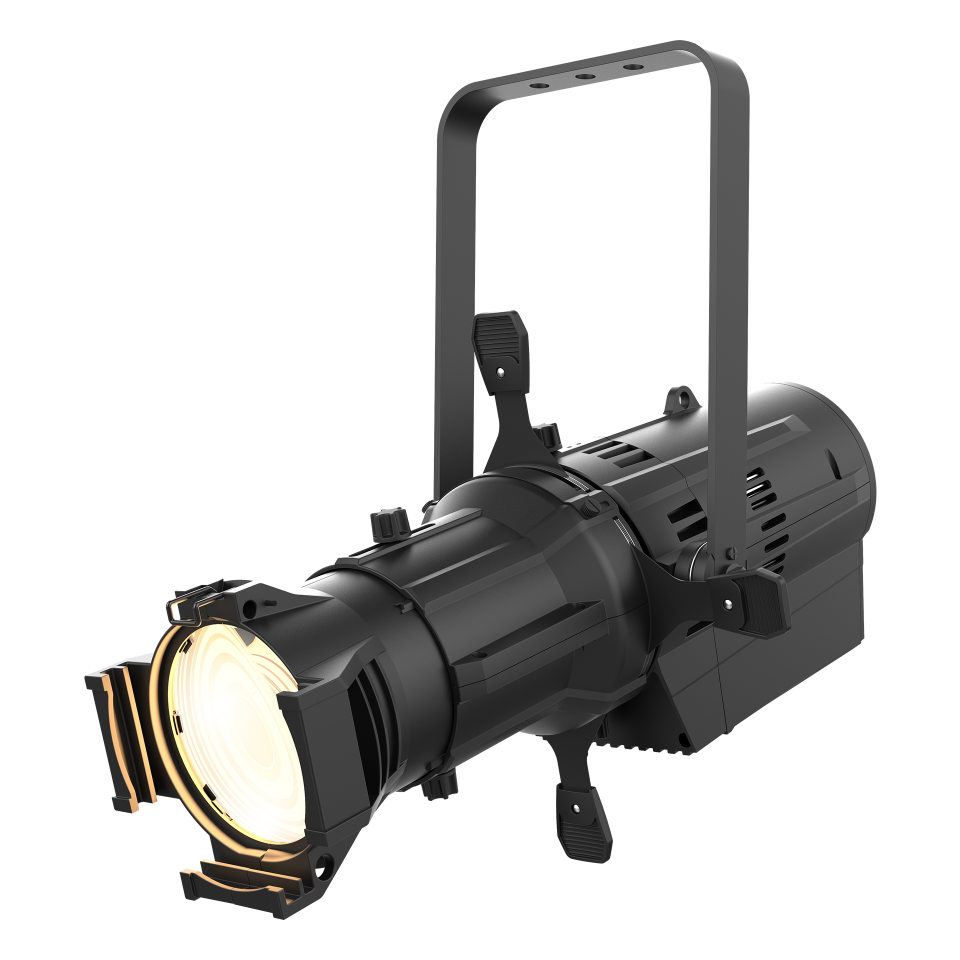 This fixture is a theatrical spotlight ideal for any venue, such as theaters, houses of worship, or event spaces, looking to upgrade from old hot-running lights. It produces a high-quality, warm white light that is brighter than many traditional fixtures and makes people and scenery look natural. Its even beam is also perfect for projecting sharp, clear patterns or logos (gobos).