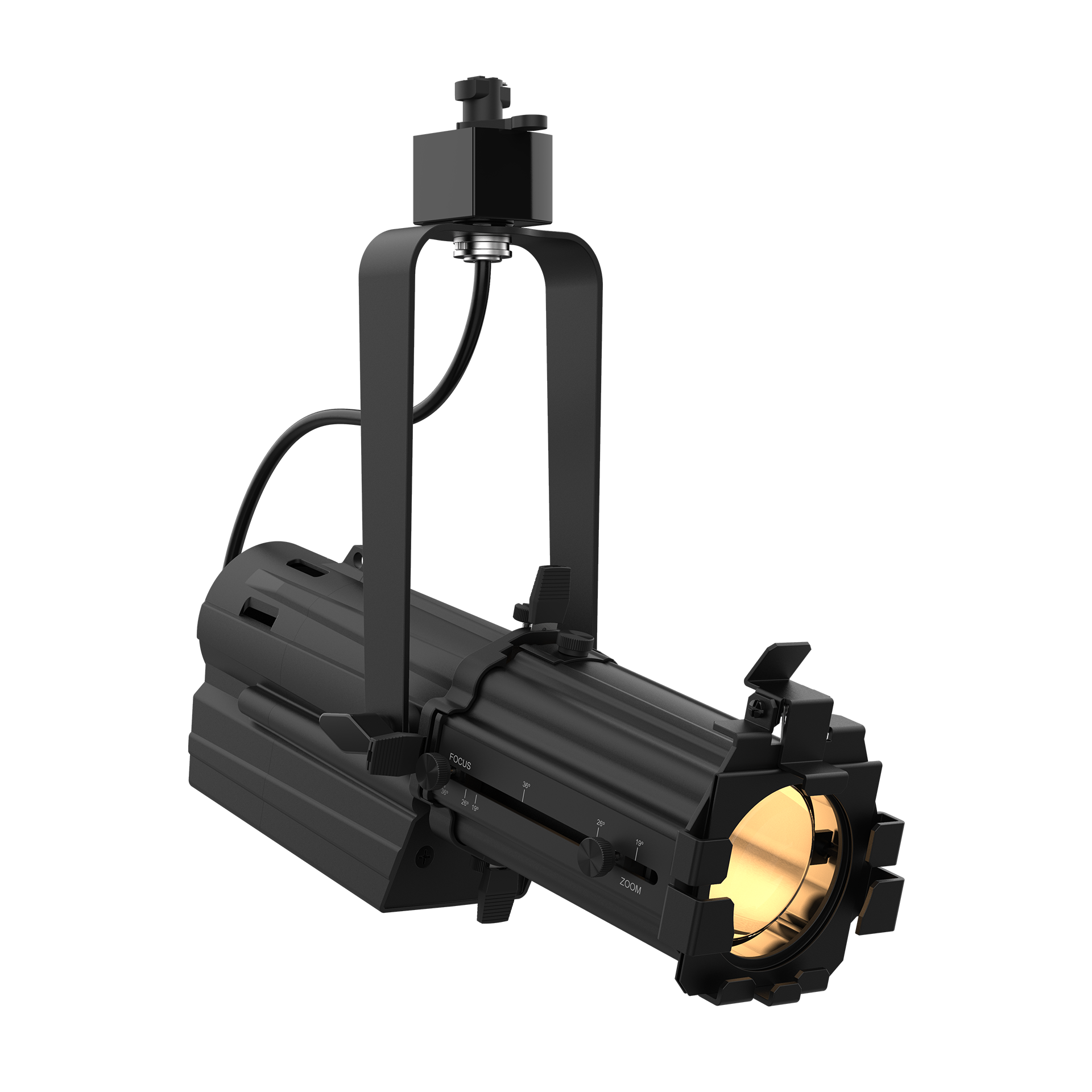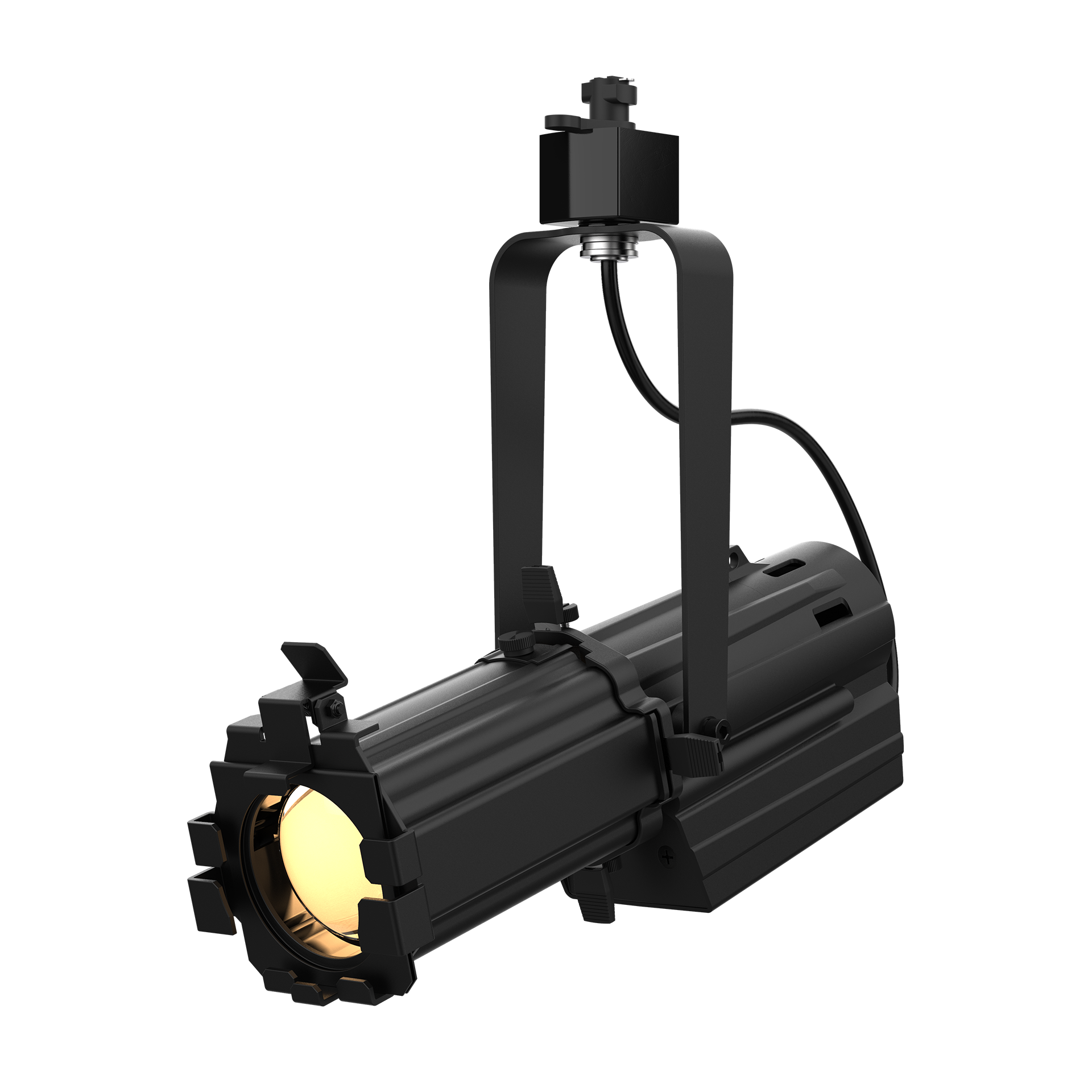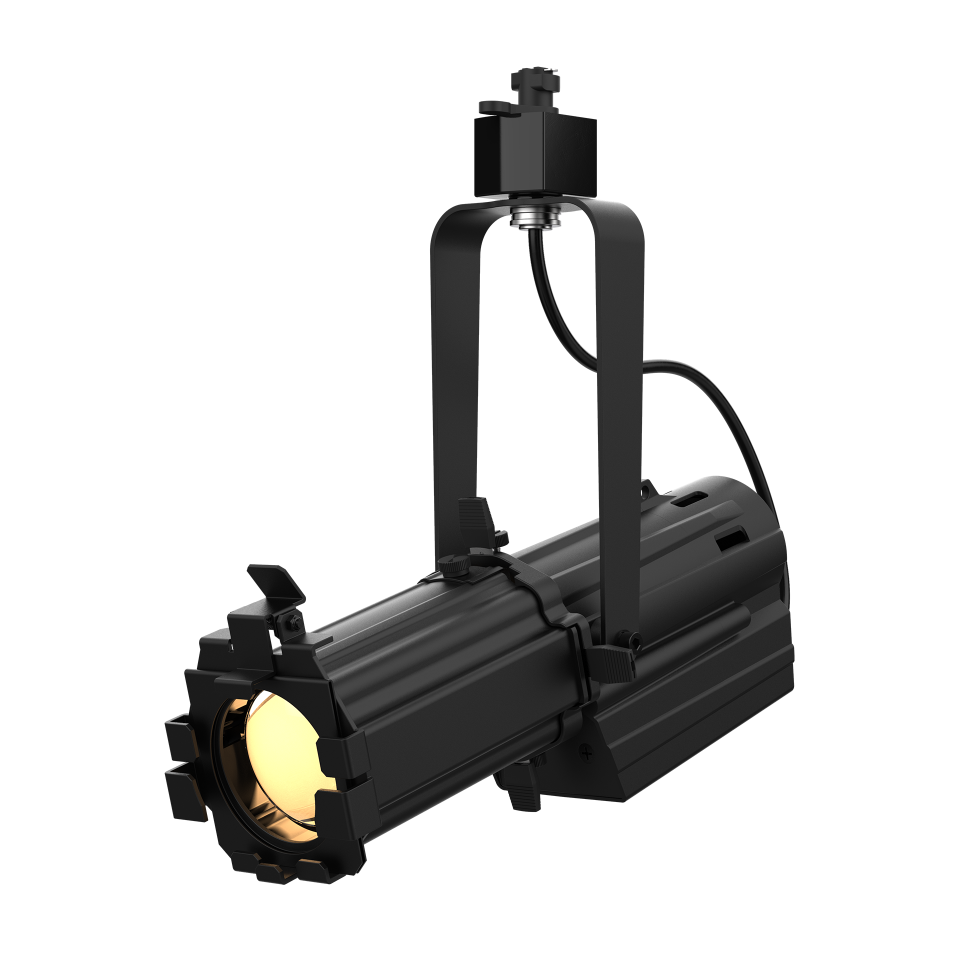 A compact, track-mountable 40W warm white LED ellipsoidal with high CRI, zooming optics, and framing shutters for creating a precise, hard-edged beam for gobo projection.