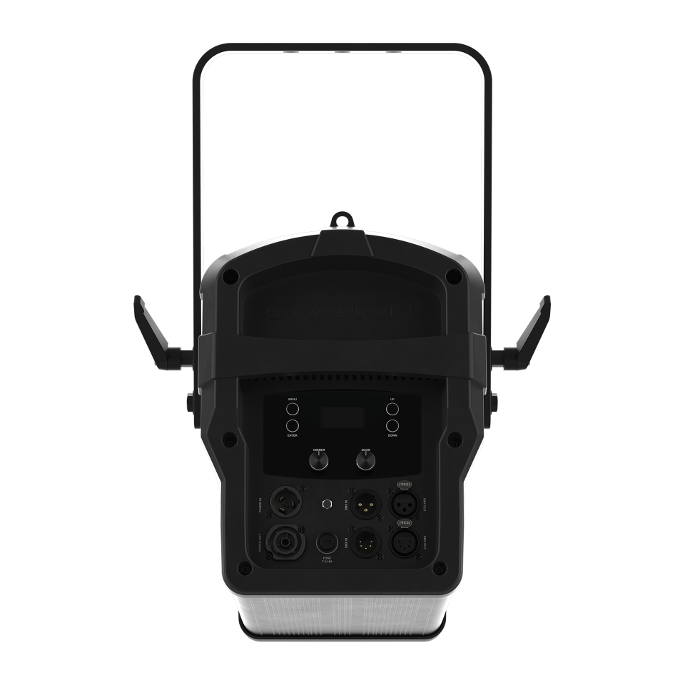 Ovation F-265WW is a high-power Fresnel-style fixture utilizing our efficient warm white LED system to project a bright, beautifully soft, high CRI (95+) field of light ideal for theatres and television studios. A motorized zoom with a 16°- 68° field range and the light output can be controlled via DMX, onboard dials, RDM, adjustable PWM and an easy to navigate OLED full text display.