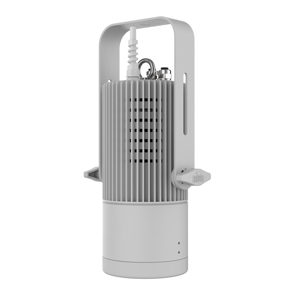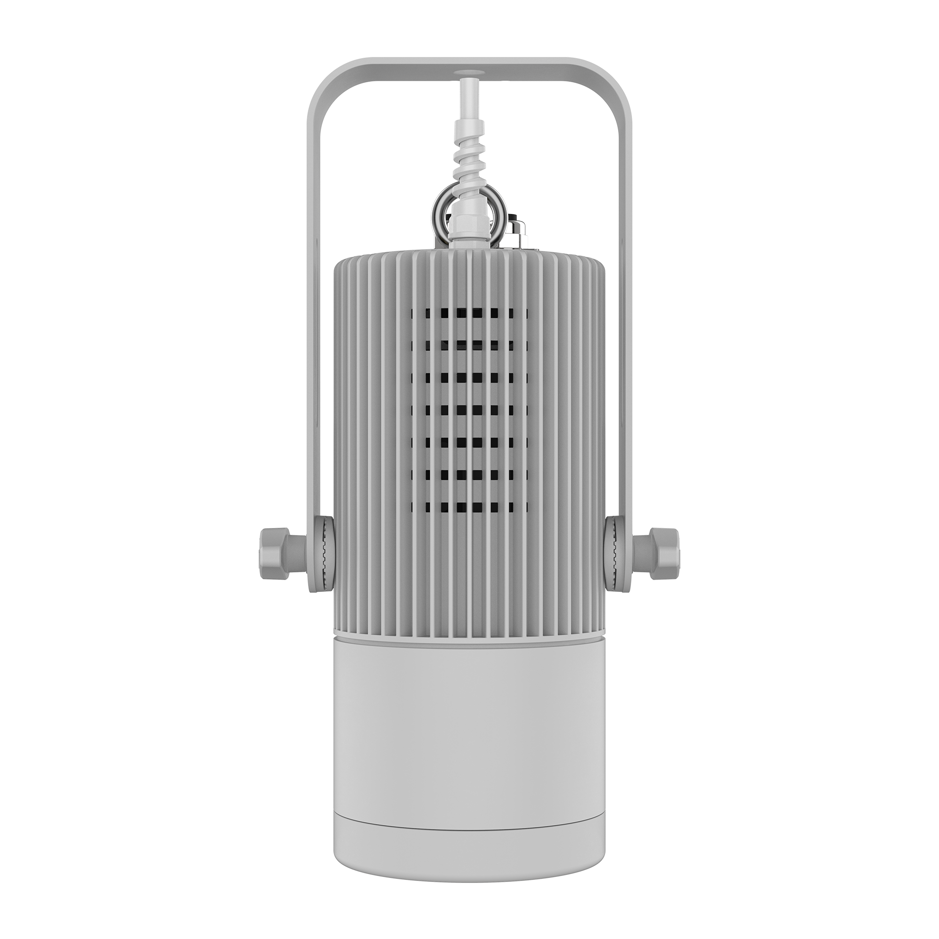 Ovation H-55WW is a small and silent, convection cooled LED houselight with a punchy warm white output and a high CRI, ideal for theatres, worship venues and recital halls or any other application with a smaller trim height. The unit also features 16-bit dimming, RDM and W-DMX control as well as adjustable PWM to prevent flickering on televised performances. Interchangeable lenses for height adjustment are another indispensable feature in theatrical and house of worship applications. For even more versatility, the yoke can be completely removed, and the fixture suspended, pendant style, from a loop on the back plate.