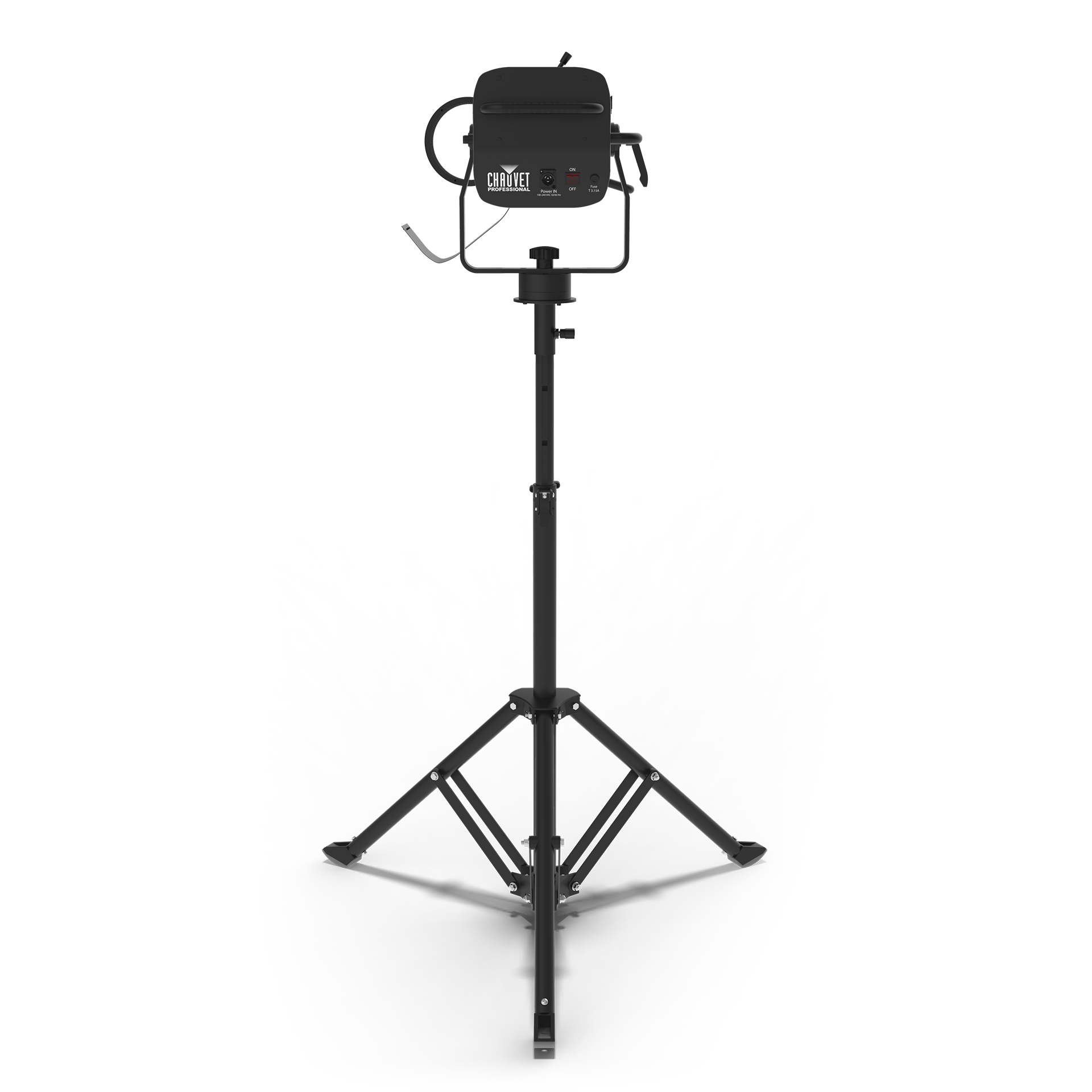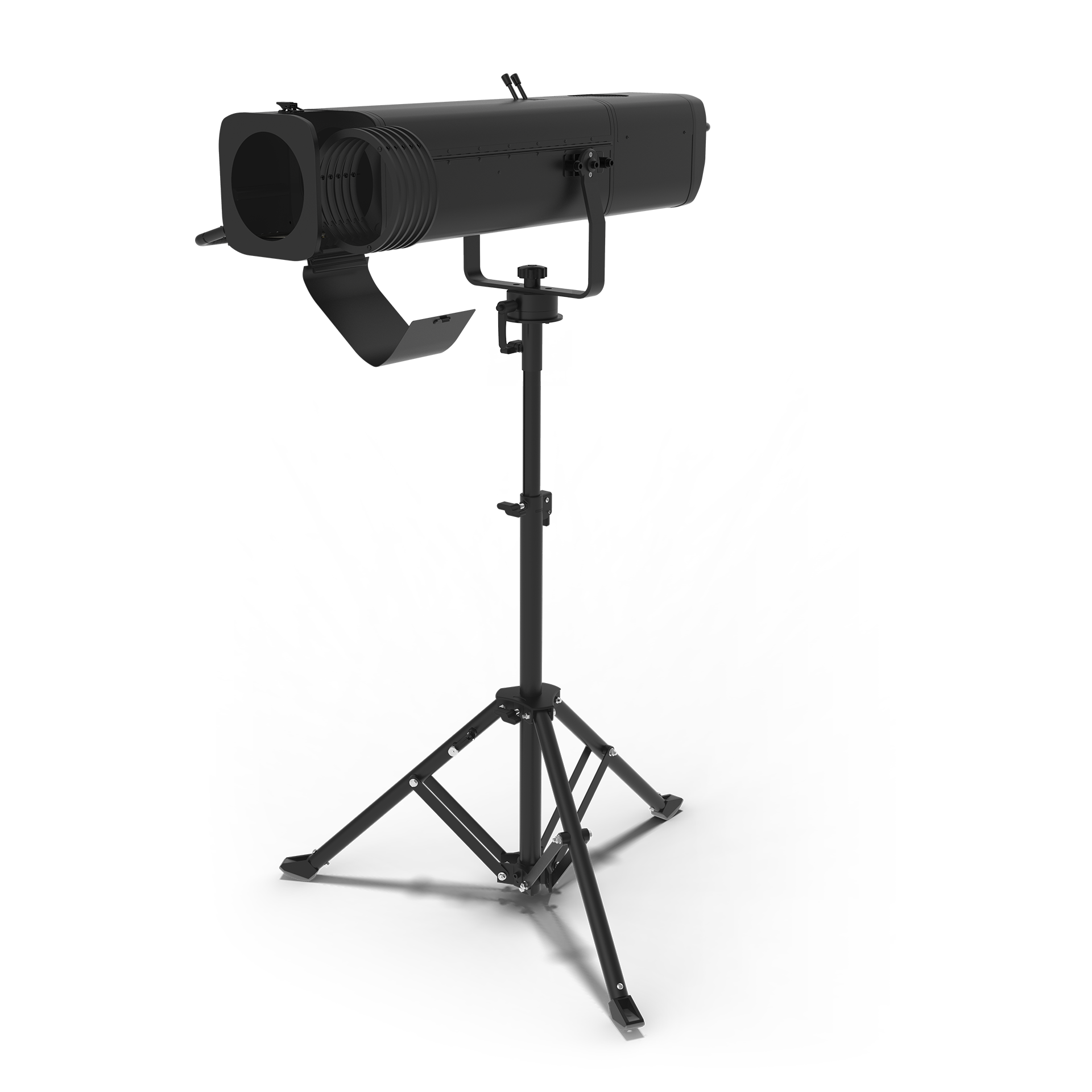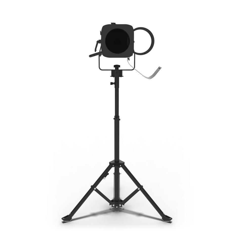 Ships as a complete system that includes the followspot and a dedicated stand.