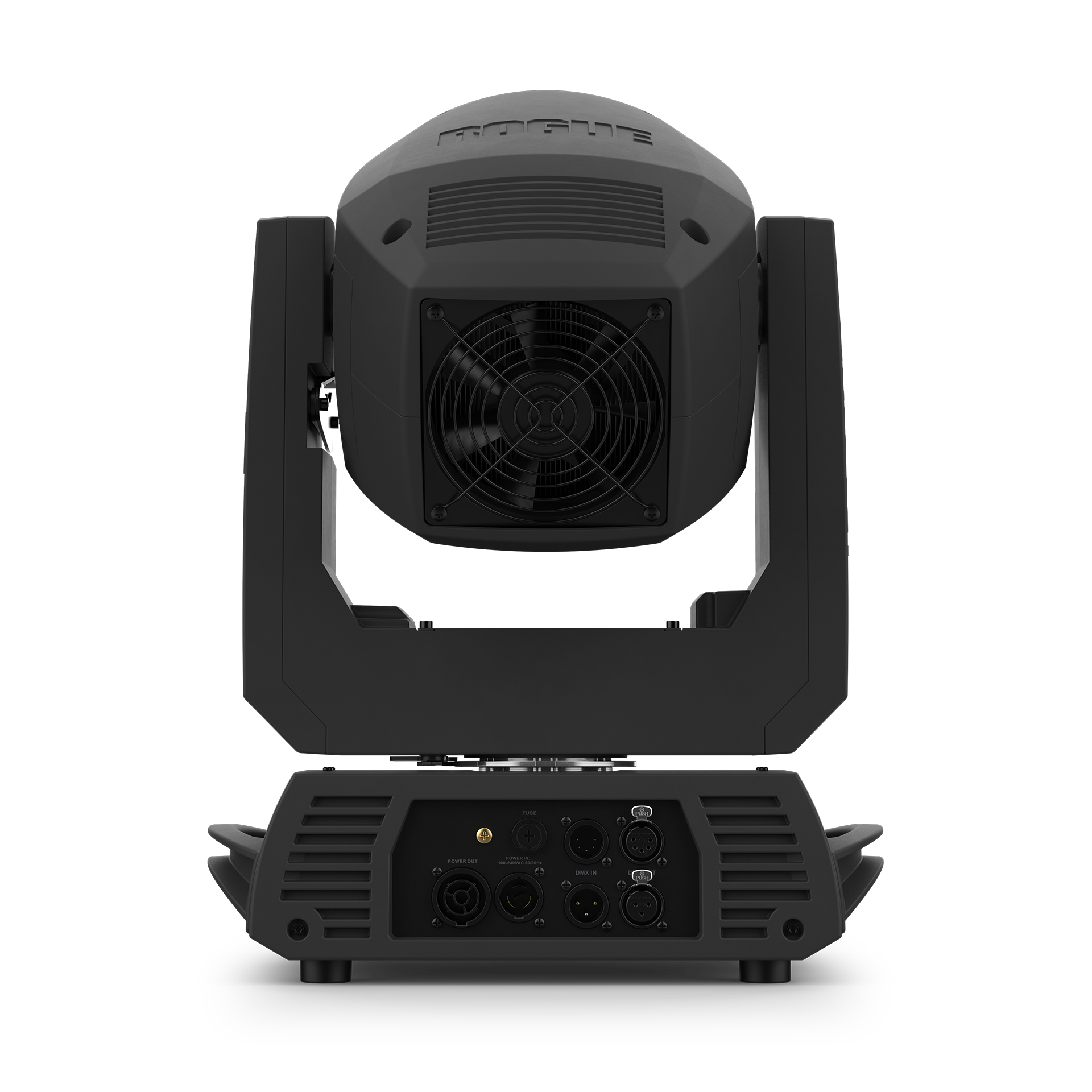 Two gobo wheels and two color wheels pair up in the fully featured Rogue R2E Spot. This compact, lightweight moving yoke spot delivers intense output from its 350W LED light engine and brings a packed wheelhouse: dual gobo wheels (one rotating with interchangeable gobos + one static) for creating custom gobo morphing looks; dual color wheels each with eight brilliant colors + white + split colors; 3-facet rotating prism for stunning aerial effects; and motorized iris and frost for beam shaping. Its 15° beam angle delivers crisp gobo projections and a selectable LED max output setting enables matching brightness with legacy Rogue R2X Spots in your rig.